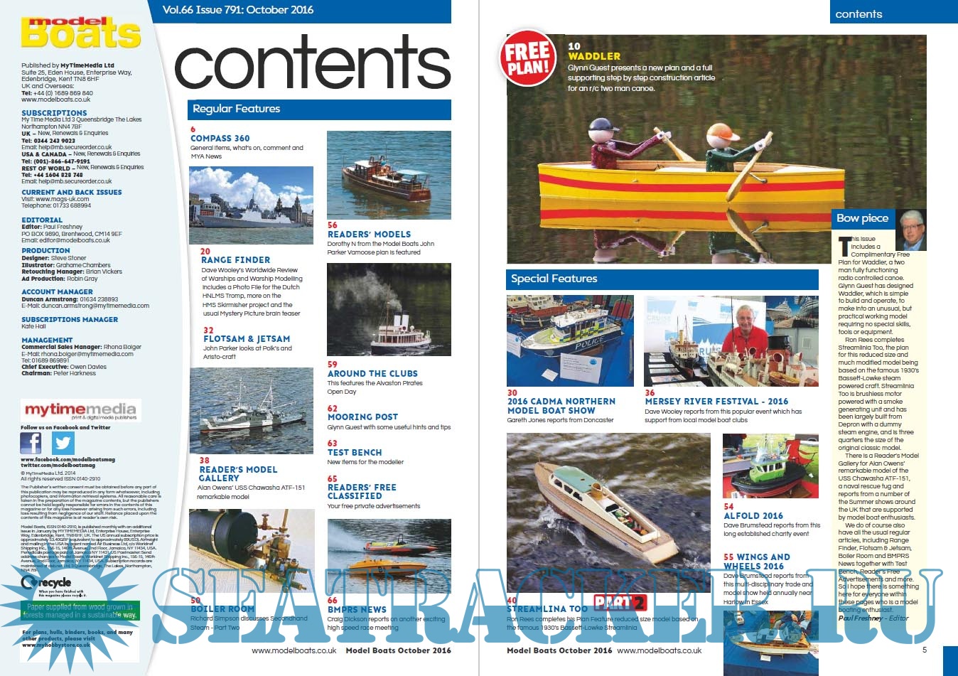Description: Model Boats magazine is a practical and informative read for those with a love for the hobby. It covers the latest news and views from the various clubs and associations around the country, useful hints, tips and step by step guides for those interested in the art of constructing a model boat as well as tests and recommendations of new boats and tools. Floating along behind these are great special features examining in depth different models from narrowboat to destroyer!