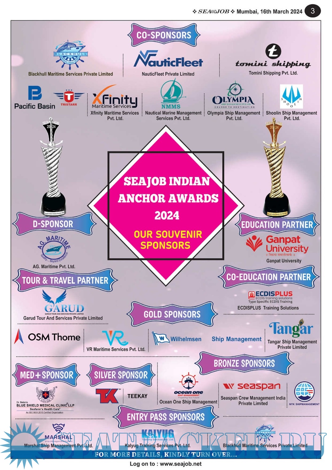 Description: The Sea and Job magazine launched in May 2007, was the second venture of Sea Line Group succeeding 'seajob.net' bringing the much renowned essence to the Group, the Sea and Job Magazine quickly gained popularity, becoming the No. 1 Shipping Magazine that came to be widely circulated all over India. Sea and Job over the years has evolved as the most trusted, ethical, objective and read maritime publication that possesses a large database of subscribers from various verticals in the industry.The magazine provides informative and interesting articles covering not just the shipping world but also the world outside it.Sea and Job is also a medium for the shipping/ manning companies to advertise marine jobs and also to promote their organization by publicizing internal activities like seminars, sports events and parties.Some notable endeavors of the magazine include the Know Your Recruiter Column, the Sailing Episodes Column and the Marine Insights section. The consistent efforts and the dedication to provide extraordinary services to the industry has resulted in the magnifying popularity and patronage of Sea and Job.