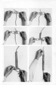 Description: A series of detailed instructional photographs accompany the instructions for 95 different knots and ropework examples. This was originally published in 1977 and 1978 as two different books. This combined edition was originally published in 1981; this copy shown here is a third printing of that edition. 9.75 inches tall, unpaginated (about 175 pages).