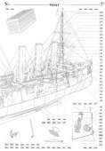 Описание: 43 листа цветных выкроек и инструкций для изготовления бумажной модели бронепалубного крейсера 1 ранга ''Аврора'' по состоянию на 1903 год в масштабе 1:200