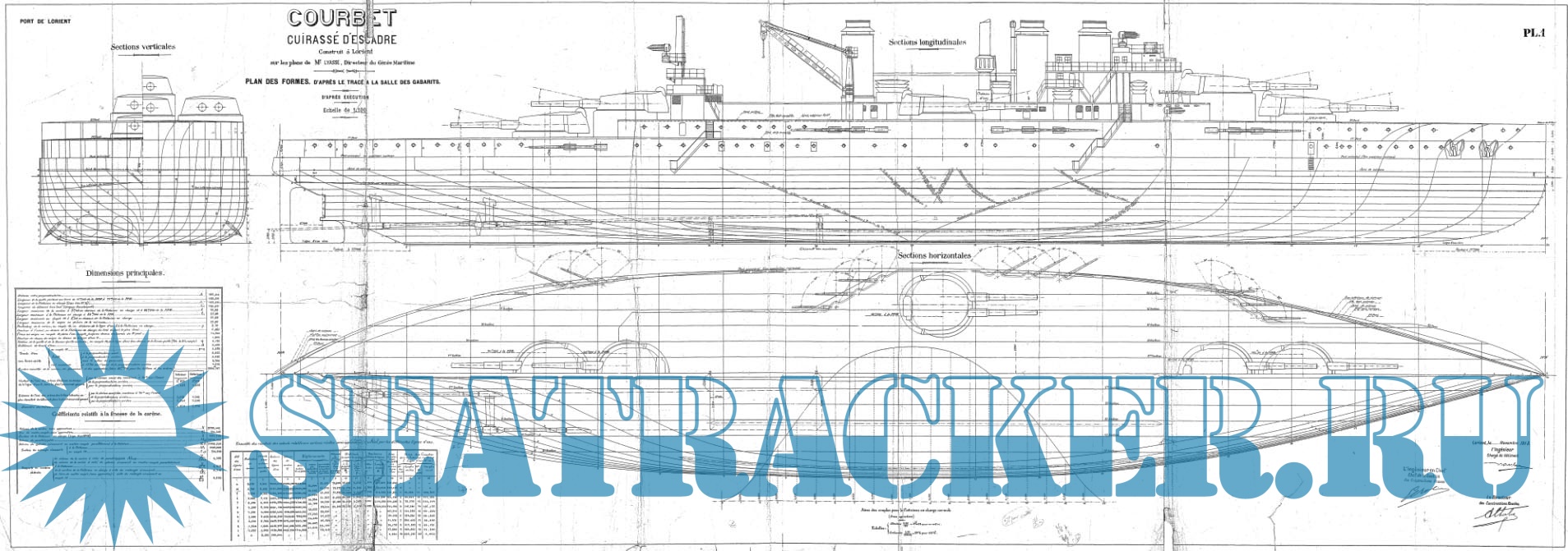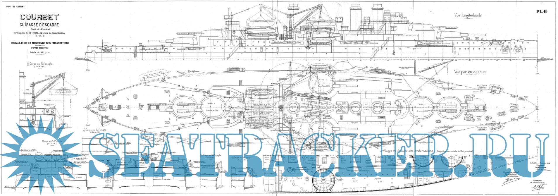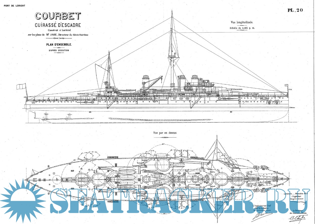 Архивные чертежи французского крейсера COURBET 1911 год