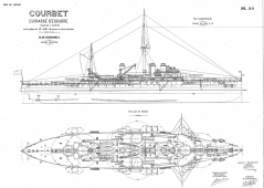 Описание: 33 листа архивных чертежей французского крейсера COURBET 1911 год