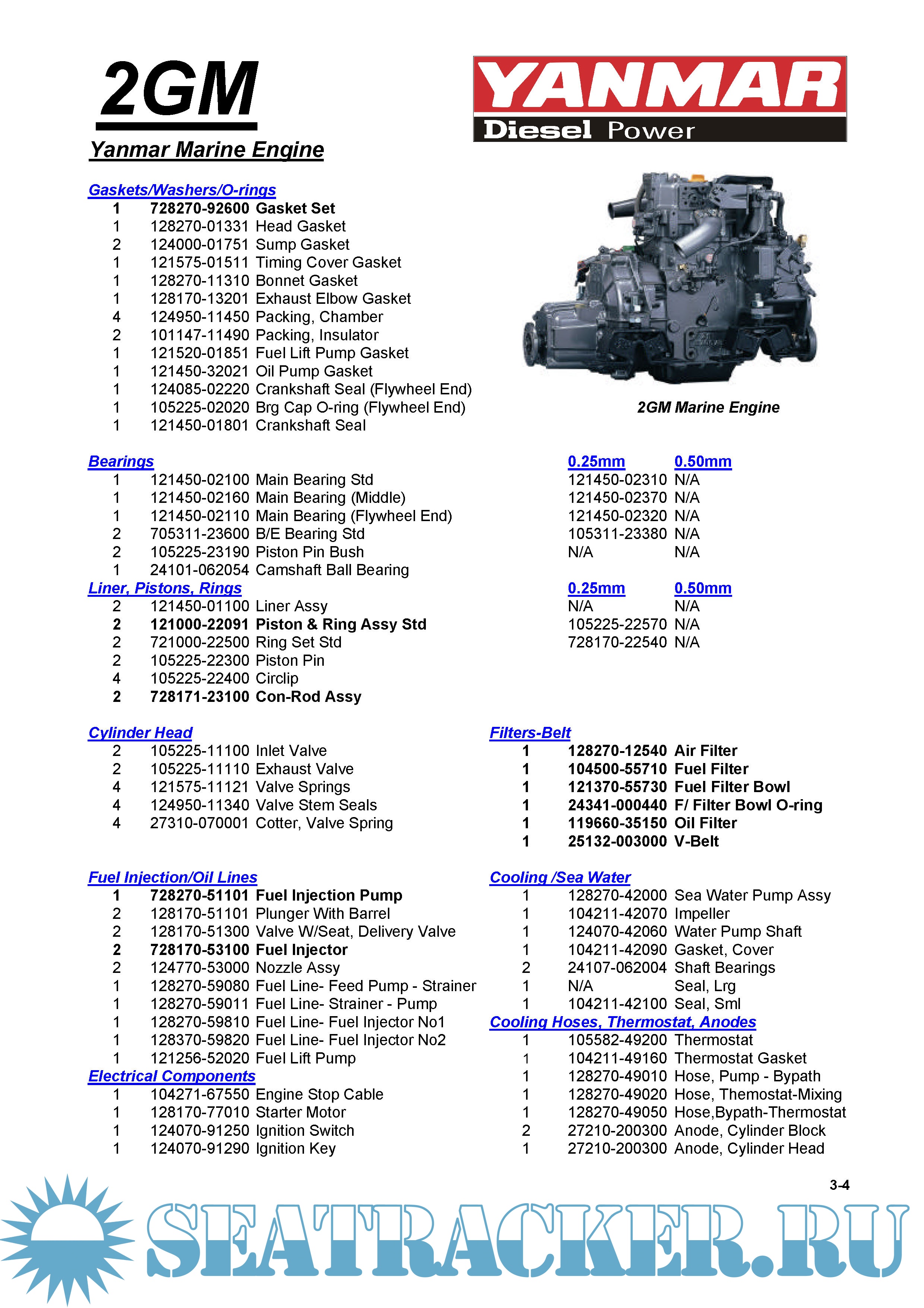 Yanmar 2GM Spare kit list - список запасных частей для ТО и обслуживания на английском