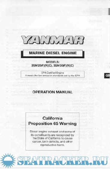 Yanmar – Marine diesel engine operational manual – Models 2GM20, 3GM30 - инструкция на английском для двигателей, выпушенных под американский рынок