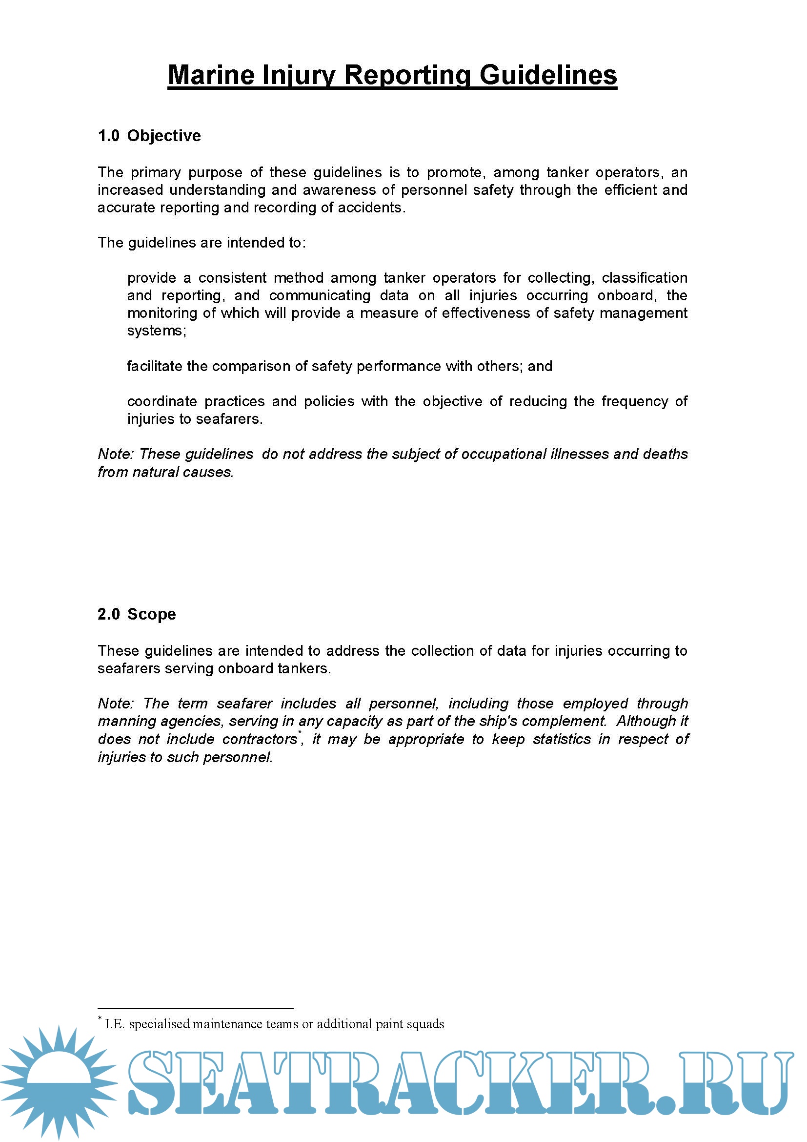 The guidelines are intended to: provide a consistent method among tanker operators for collecting, classification and reporting, and communicating data on all injuries occurring onboard, the monitoring of which will provide a measure of effectiveness of safety management systems;