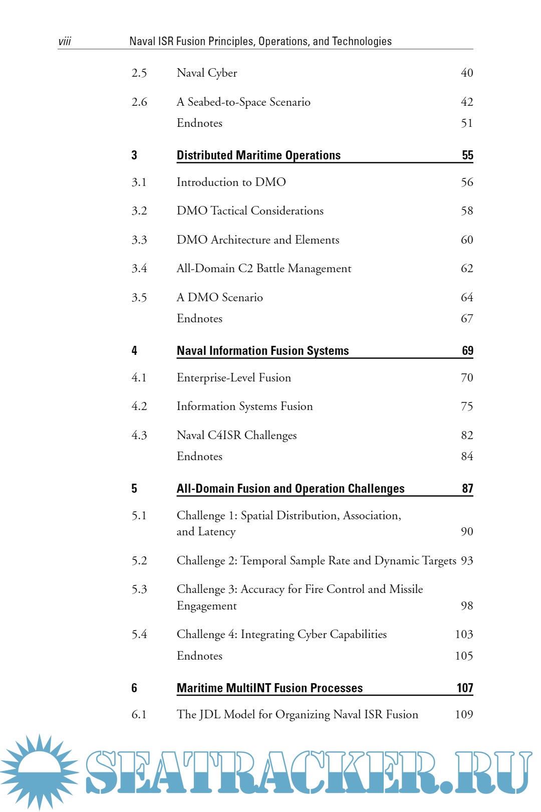 Year: 2023 Language: English Author: Jim Scrofani Publisher: Artech House Publishers Edition: Unabridged edition ISBN: 978-1-63081-894-4 Format: PDF Quality: eBook Pages count: 249 Description: With its unique focus on advanced approaches to naval intelligence, surveillance, and reconnaissance (ISR) and the critical underlying technologies needed to empower distributed maritime operations (DMO), this book provides a complete discussion of the operational requirements for current and future naval applications. Readers will find sufficient details to enable the design and development of technical solutions to achieve advanced information fusion as well as command and control concepts. The book approaches distributed naval operations and the role of ISR by applying advanced technologies and addressing future conflicts, providing naval officers and engineers with the information needed to plan and develop advanced systems. This is a great resource for anyone in the ISR, intelligence, space, antisubmarine warfare, electronic warfare, and surface warfare disciplines who are looking for an in-depth understanding of advanced ISR operations and technologies.