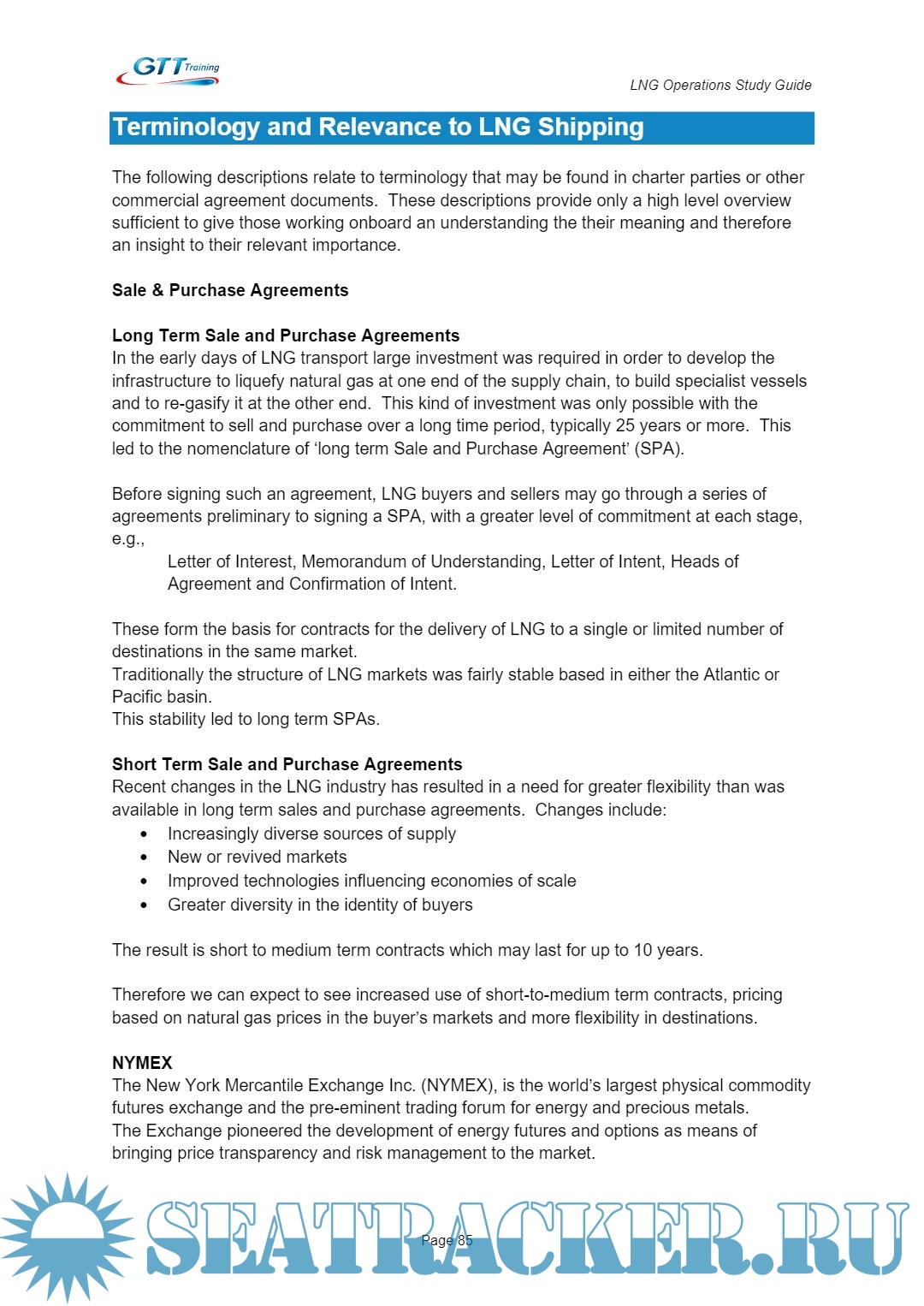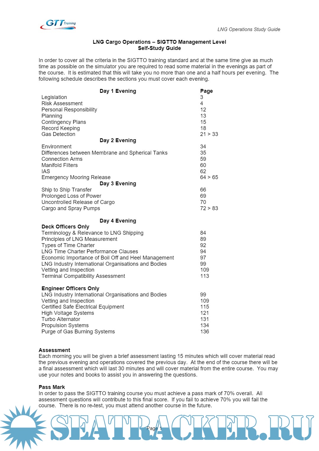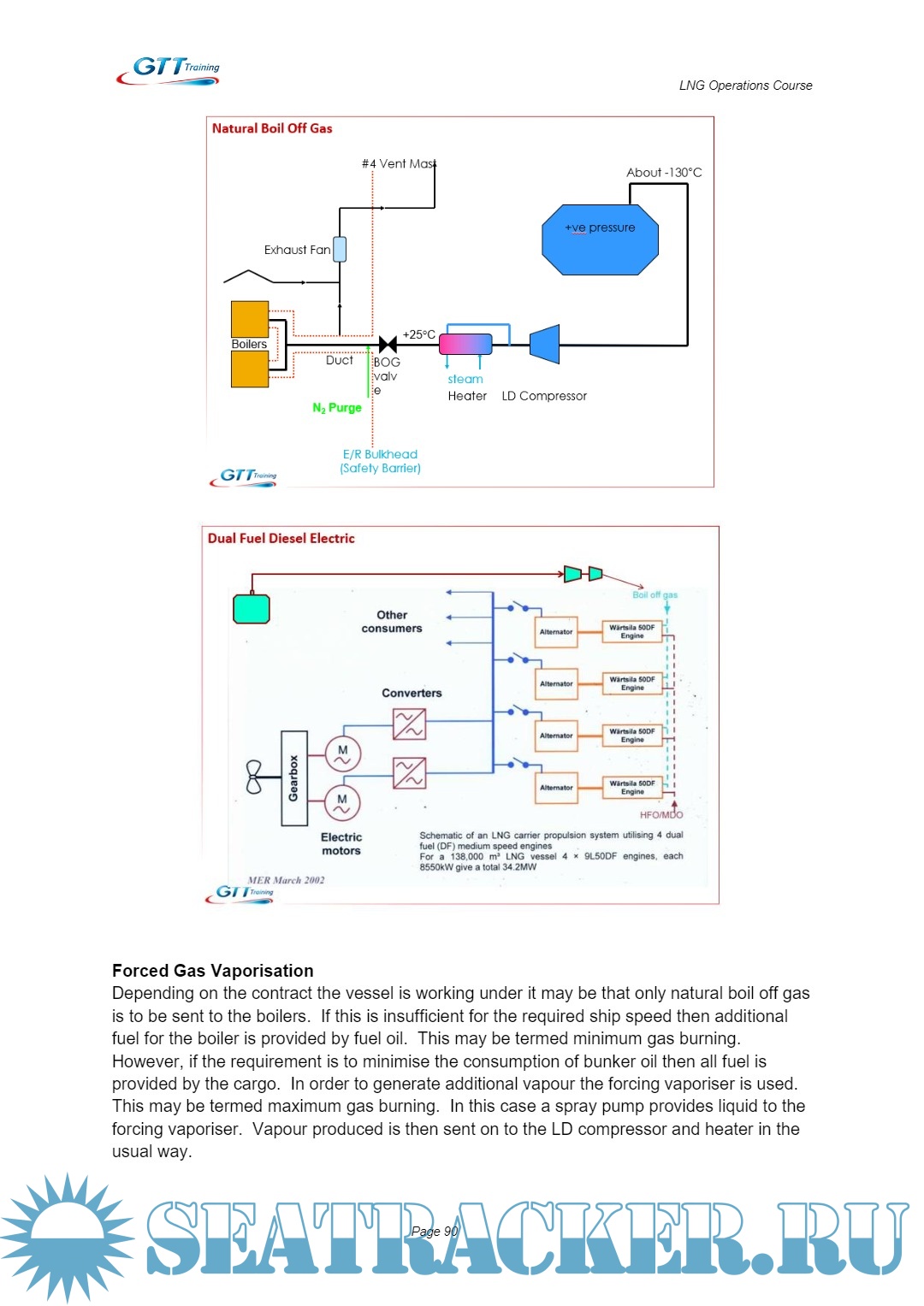 Year: 2019 Language: English Author: GTT Training Genre: Training courses Format: PDF Quality: eBook Pages count: 141+131+38 Description: LNG Cargo Operations Course (4 Days) (SIGTTO Management Level) 1) Self-Study Guide (Version Date: July 2015) In order to cover all the criteria in the SIGTTO training standard and at the same time give as much time as possible on the simulator you are required to read some material in the evenings as part of the course. It is estimated that this will take you no more than one and a half hours per evening for 4 days. 2) Exercise Book - DFDE Model (Version Date: August 2018) Objective: The purpose of the exercise is to help you become familiar with operation of the simulator and the layout of simulator pages by starting operations required to prepare the ship for loading the first cargo after departure from a repair yard. Scenario: At the start of the exercise the ship is liquid and gas free having recently left a repair yard where repairs and inspection have been carried out in all cargo tanks and cofferdams. At this stage of the voyage to a loading port, preparations are being made for loading a full cargo of LNG. Currently the cargo tanks and interbarrier spaces contain only dry air. 3) Course Notes (Version Date: August 2019)