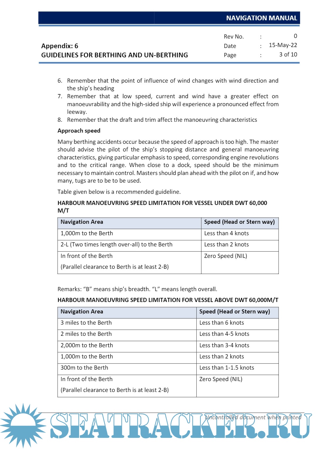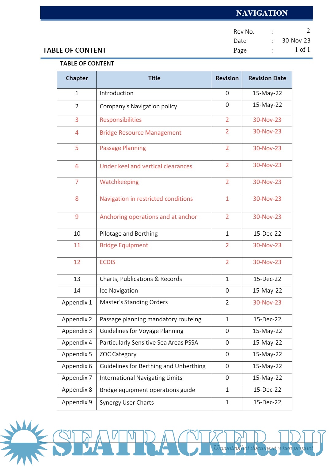 • Guidelines and appendices to conduct safe voyages.