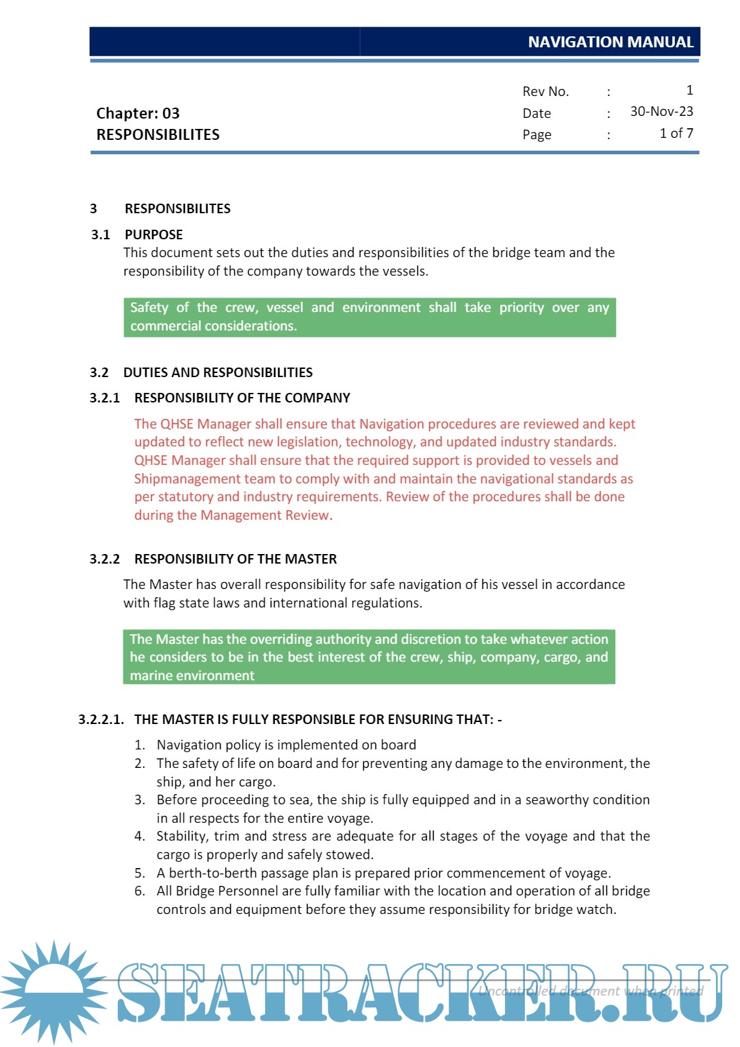 Description: This Manual is issued to assist all personnel involved in the navigation of ships to carry out their duties in a safe and efficient manner.