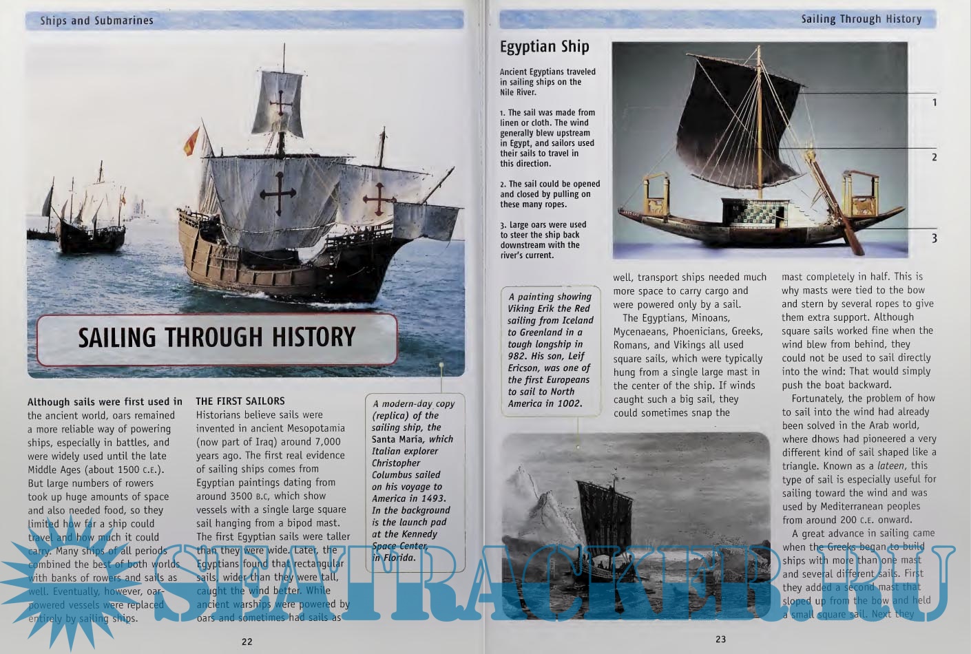 Description: Introduces the development of submarine and ship technology, from the dawn of civilization to the present, including Egyptian plank boats, ocean liners, and sports boats.