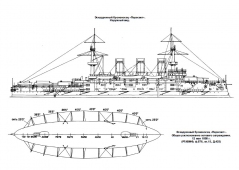Эскадренные броненосцы типа "Пересвет" создавались для дальней океанской службы под влиянием идей британских "облегчённых" Ринауна, "Центуриона" и "Барфлера" с пониженным до 10" главным калибром.