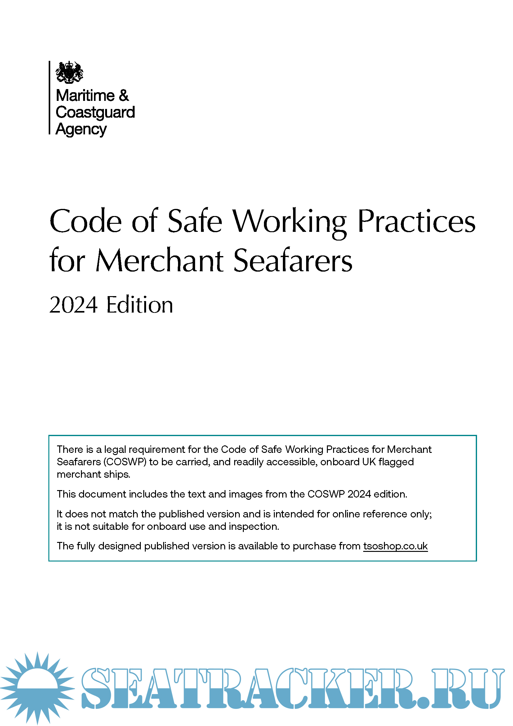 It does not match the published version and is intended for online reference only; it is not suitable for onboard use and inspection. https://www.gov.uk/government/p...arers-coswp-2024