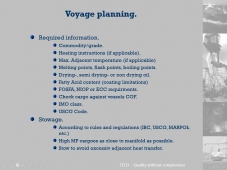 Year: 19xx Language: English Author: Capt. Lasse Didriksen Genre: Training courses Publisher: Teco Maritime AS Format: PPT Quality: eBook Pages count: 22 Description: Carrying vegetable oils can be as easy as you make it, or as difficult as it gets. There are, compared to a regular CPP or DPP voyage, some issues to take into consideration when preparing for loading, discharging and last but not least cleaning after vegetable and animal oils and fats. Handling Veg. oil is not rocket science. It is just a matter of being prepared, having a plan and stick to it. If things are going wrong make sure you have a plan for that as well.