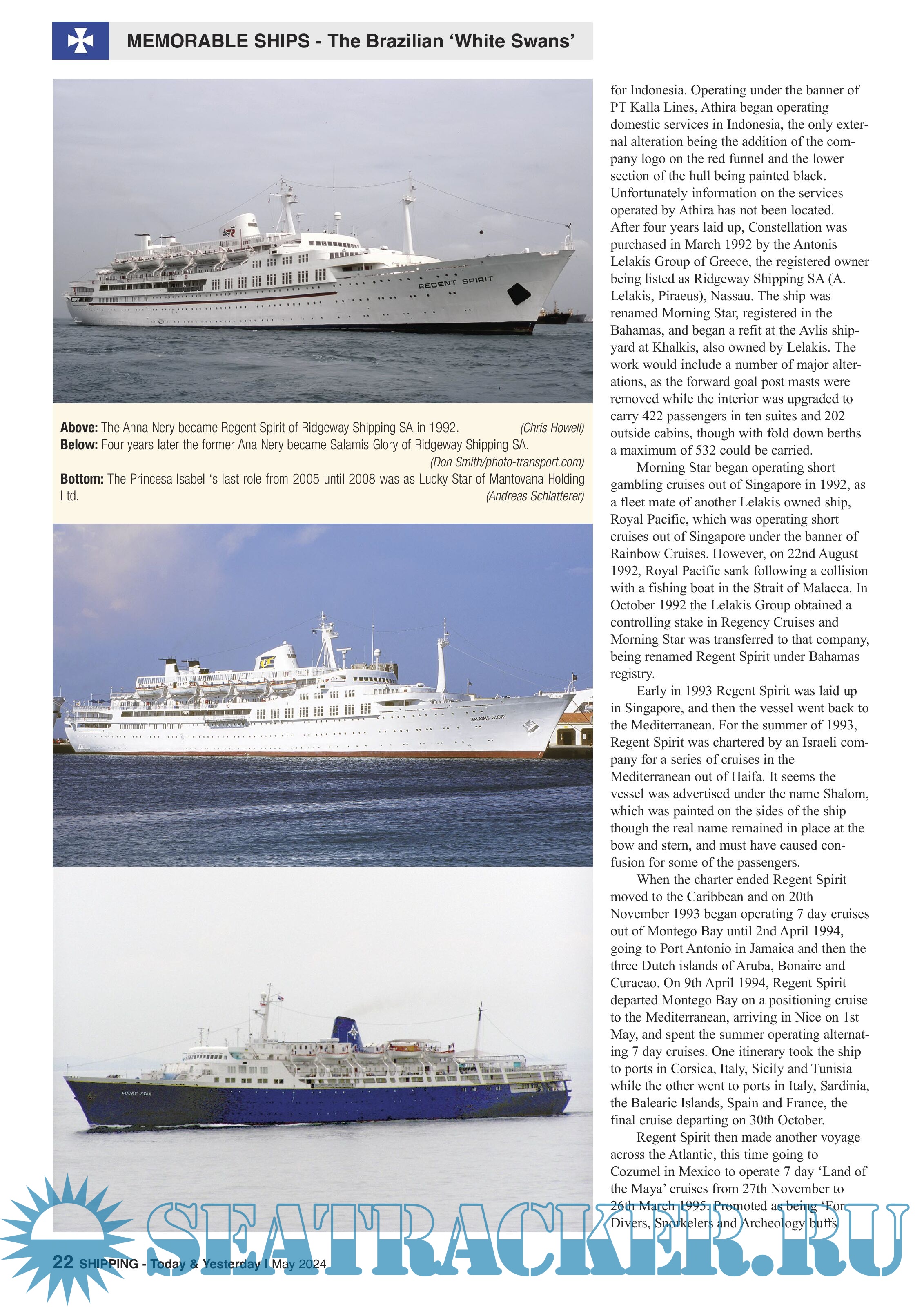 Year: 2024 Language: English Author: Nigel Lawrence (Editor) Genre: Periodical (magazine) Edition: Issue 410 May, 2024 Format: PDF Quality: eBook Pages count: 68 Description: Shipping Today & Yesterday Magazine is a monthly magazine for the shipping enthusiast offering up-to-date information, topical and in-depth historical articles alongside images, many of which are exclusive to the magazine. Shipping Today & Yesterday is a specialist magazine for the shipping enthusiast offering up-to-date information, topical and in-depth historical articles. Shipping Today & Yesterday was first produced in March 1990 by, the then Editor and Publisher, John Young. The first edition stated that it would, “offer a news service covering important developments in the Shipping industry Today and will look back at ships and events of Yesterday, with regular features on merchant ships.