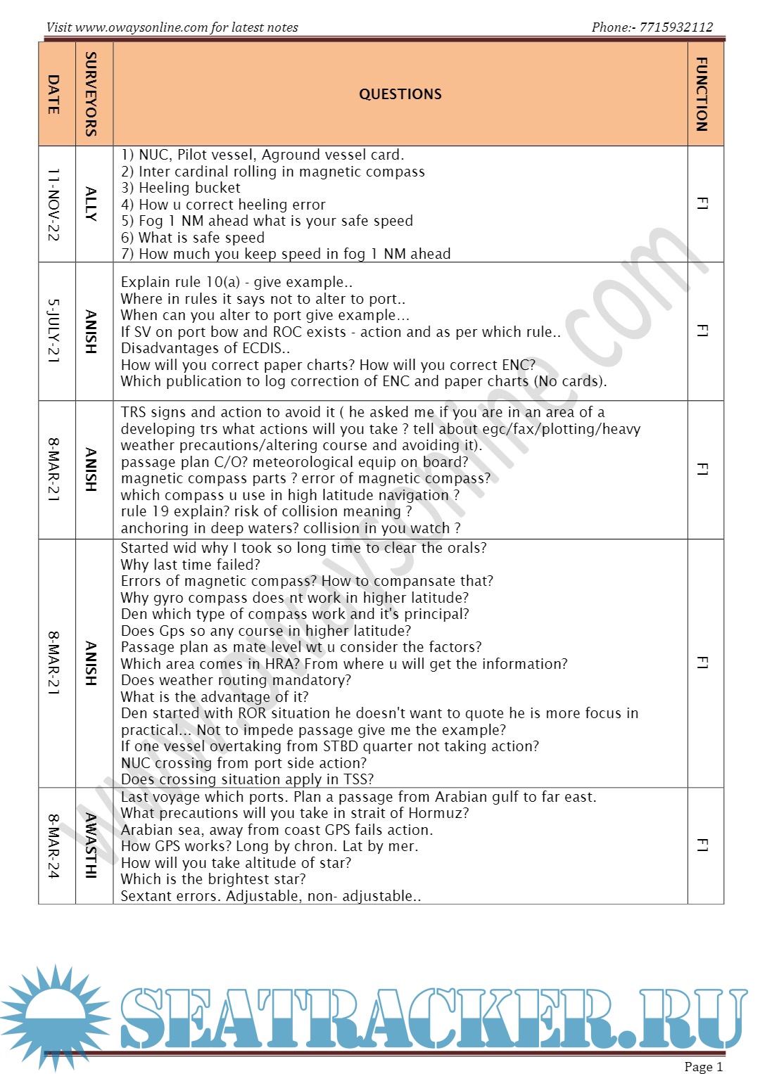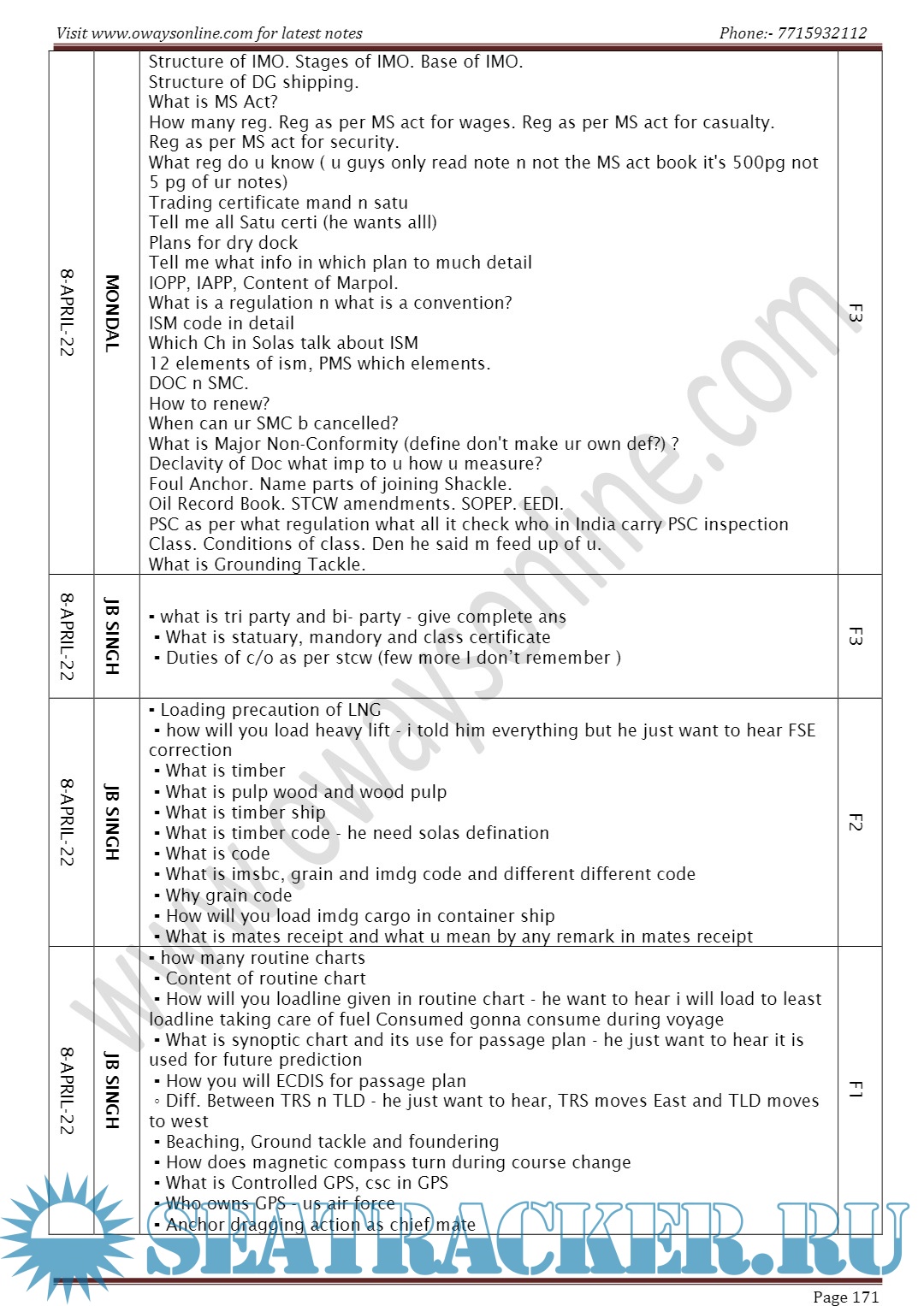 Description: Orals Question Bank for Chief Mate F.G. Mercantile Marine Department (MMD), India Examinations.