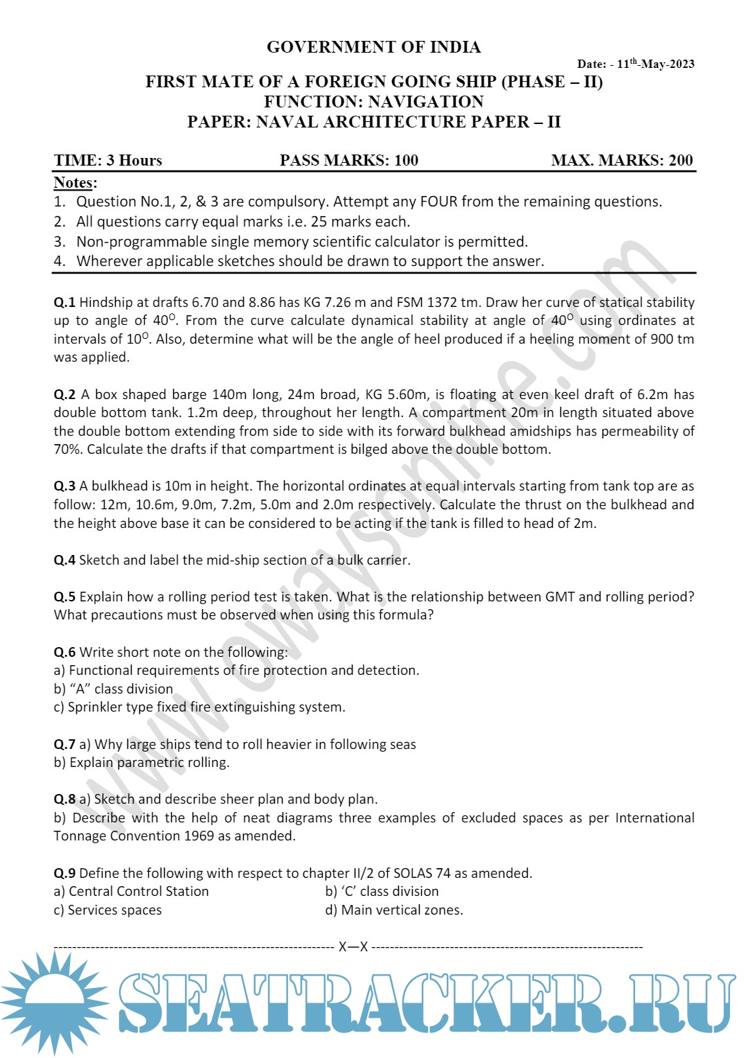 Question Paper Set (May 2023) Phase II (Chief Mate F.G.) Mercantile Marine Department (MMD), India…