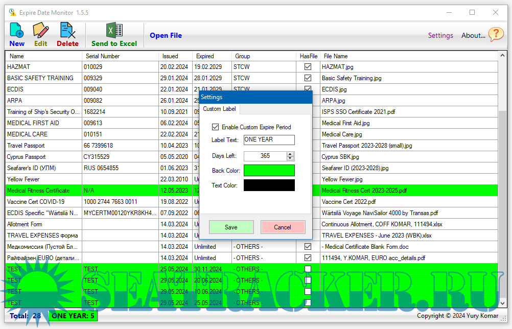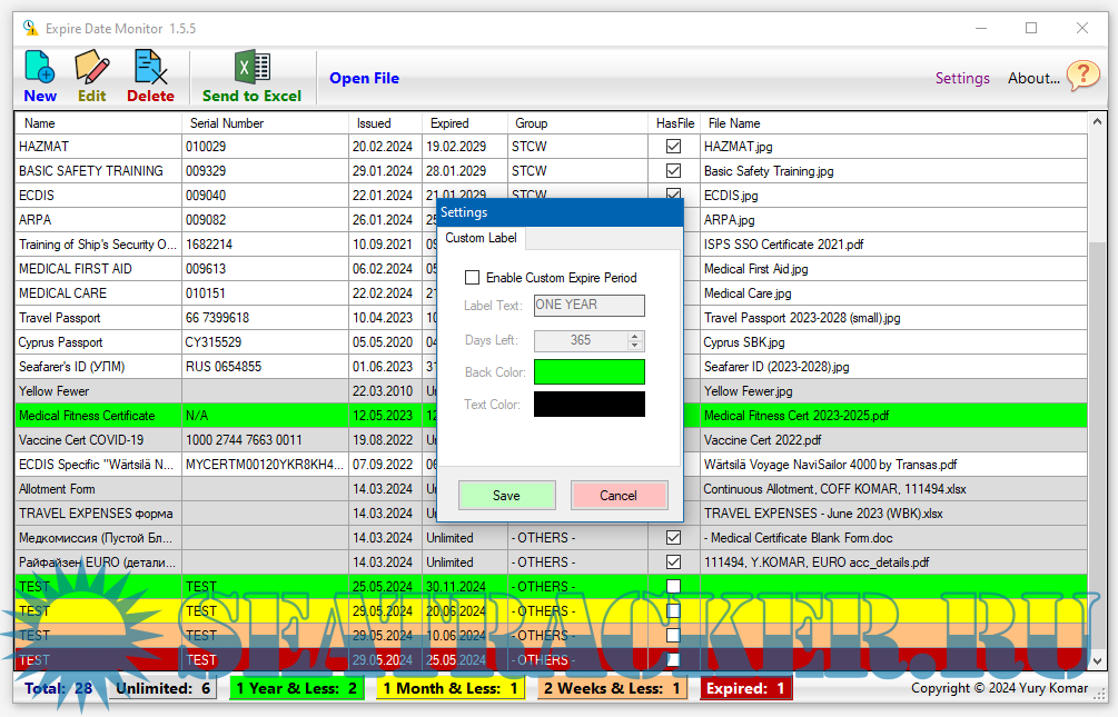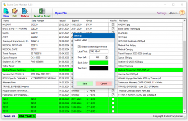 ✅ Added: Option to set your custom label and color to highlight documents with your own value of Days Left till expiration.