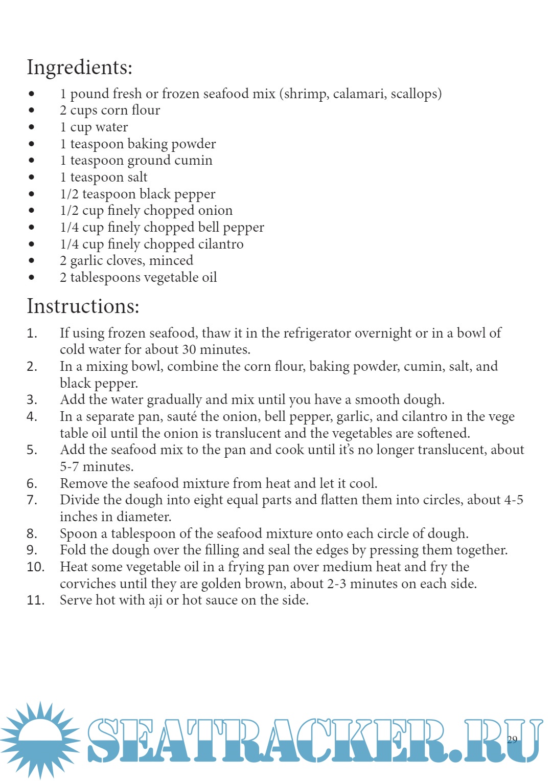 Description: Welcome to our Ecuador Seafood Cookbook, a culinary journey that will take you on a delicious adventure through the diverse and flavourful cuisine of the Ecuadorian coast. Ecuador is a country blessed with a vast and bountiful coastline, offering an abundance of fresh and delicious seafood.