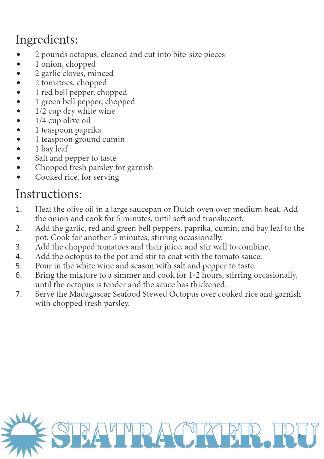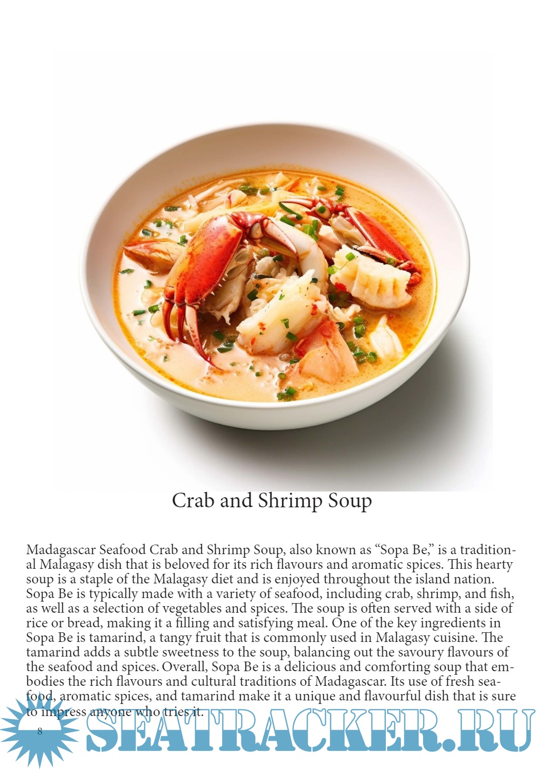 In this cookbook, we have compiled a collection of thirty delicious and authentic seafood recipes that represent the diversity of Malagasy cuisine. From classic dishes like grilled shrimp skewers and lobster bisque to more adventurous options like coconut shrimp curry and seafood gumbo, there is something for everyone to enjoy. Our recipes are easy to follow and use fresh, locally sourced ingredients that are readily available in Madagascar. We also provide tips and techniques for preparing seafood, as well as information on the cultural and culinary significance of each dish. We hope that this cookbook will inspire you to explore the rich and vibrant world of Malagasy seafood cuisine and to create your own culinary adventures in the kitchen.