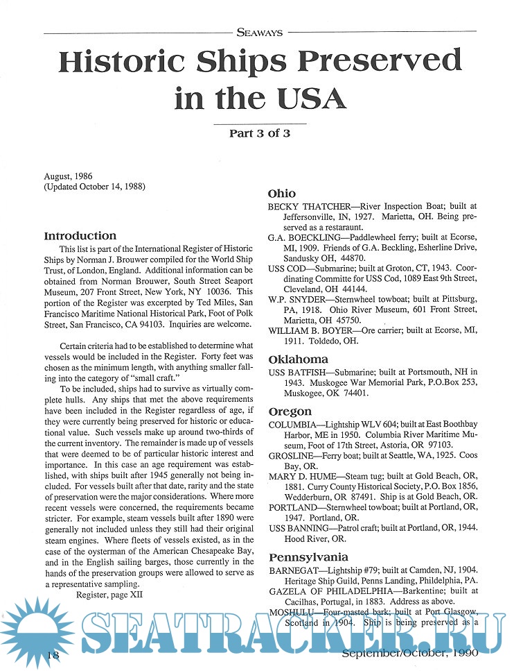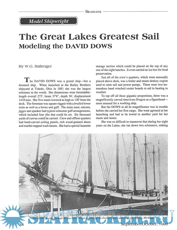 Year: 1990 Language: English Author: Scottie Dayton (Editor) Genre: Periodical (magazine) Edition: 1990-4 Format: JPEG Quality: Scanned pages Pages count: 74 Description: Seaway is the home port for Seaways Ships in Scale magazine, the leading workshop and research magazine for the ship modeler. In the magazine we explore all levels of modeling experience, all types of ships, all kinds of models, all historical eras and all construction materials