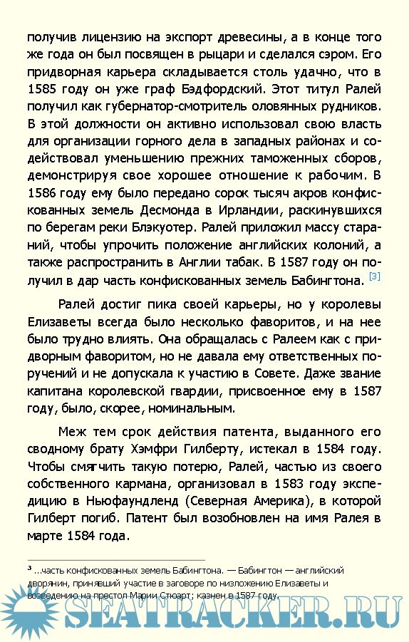 Описание: Нора Лофтс на страницах своей книги предлагает читателю проследить за полной приключений и невероятных поворотов фортуны жизнью пирата и фаворита Елизаветы Английской Уолтера Ралея. Юный Уолли вопреки воле своего отца намеревается стать моряком, но даже в мечтах храбрый юноша и не мог себе представить, какой взлет при дворе Елизаветы его ждет и чего это будет ему стоить.