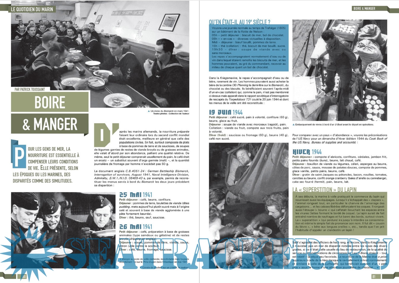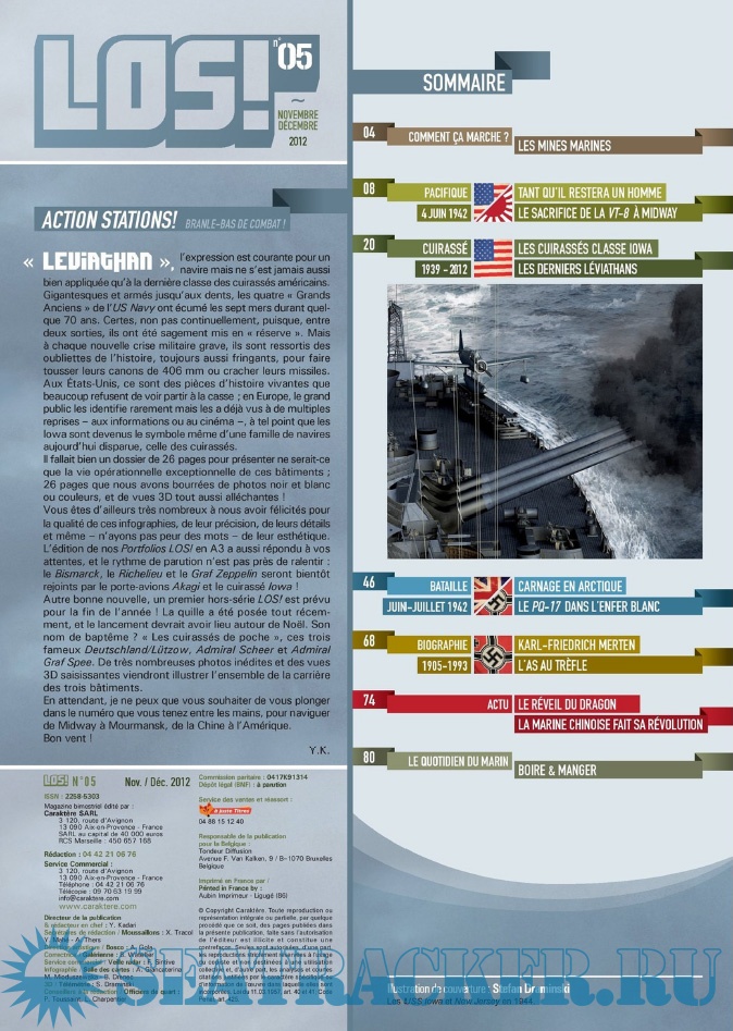 Description: LES ÉDITIONS CARAKTÈRE PRENNENT LE LARGE EN LANÇANT UN NOUVEAU MAGAZINE CONSACRÉ À LA GUERRE NAVALE !Les sujets passionnants ne manquent pas et LOS ! met un point d’honneur à les présenter au lecteur comme cela n’a jamais été fait dans la presse française jusqu’à présent. Un seul mot d’ordre pour l’équipe rédactionnelle : rigueur scientifique et présentation ludique !S’appuyant sur un fond photographique d’exception, sur des plans de bateaux et d’avions, les éditions Caraktère innovent une fois de plus en vous proposant aussi des vues 3D détaillées, le tout au service de textes soigneusement rédigés par des auteurs spécialisés. Vous comprendrez ainsi comment fonctionne un submersible, comment se déroule un combat naval, comment est conçu un cuirassé ou comment attaquent les avions-torpilleurs !Revivez au fil des pages l’aventure humaine exceptionnelle des matelots de la marine marchande affrontant les U-Boote en Arctique, ou celle des pilotes embarqués sur les porte-avions américains et japonais. Lisez les exploits des hommes-grenouilles italiens en Méditerranée, des équipages des vedettes lance-torpilles dans la Manche, des sous-marins soviétiques de la guerre froide ou des grands cuirassés de 1914-18