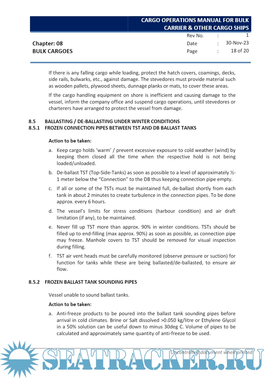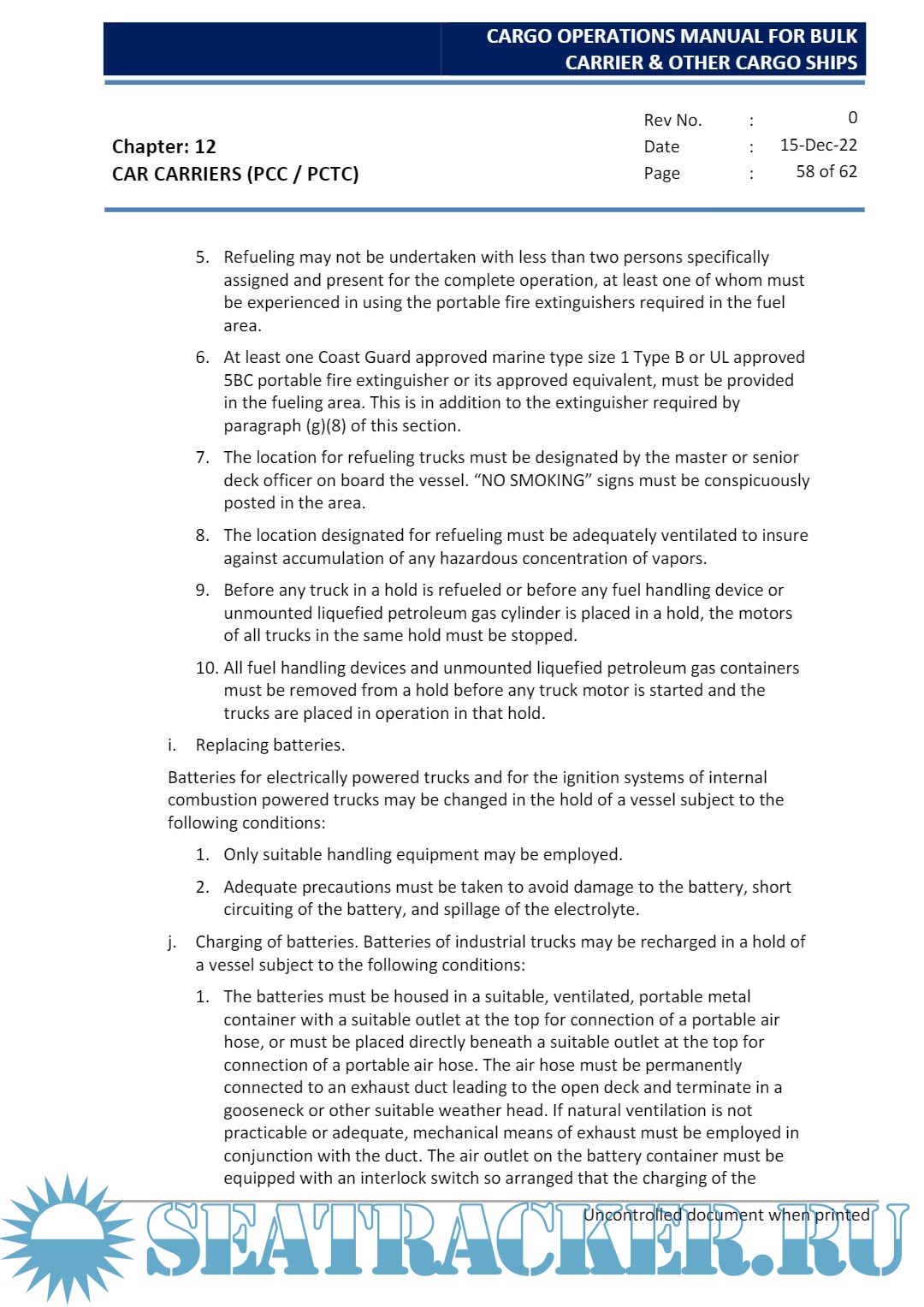 Description: The purpose of this manual is to guide the Master, Officers, and Crew to load, carry and unload cargoes in a safe and efficient manner. At every stage of the vessel’s operation due consideration must be given to all the rules and regulations of the Classification society, IMO codes (IMSBC, Grain, IMDG, CSS), SOLAS and National regulations for cargo carriage.