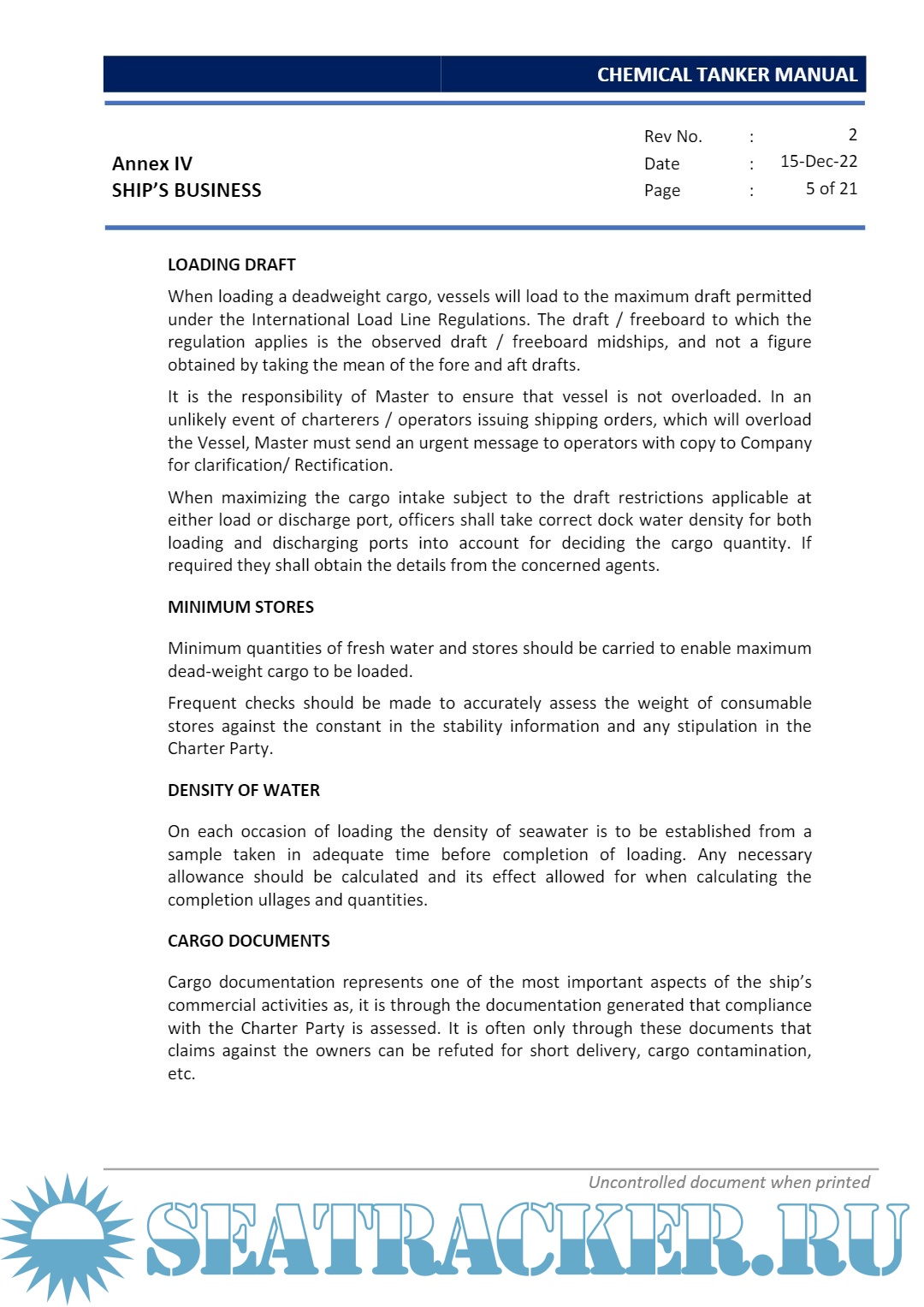 Description: This Manual is issued to assist all personnel involved in the operation of Chemical Tankers which are complex vessels designed to transport a wide range of cargoesand a large number of segregated products simultaneously.