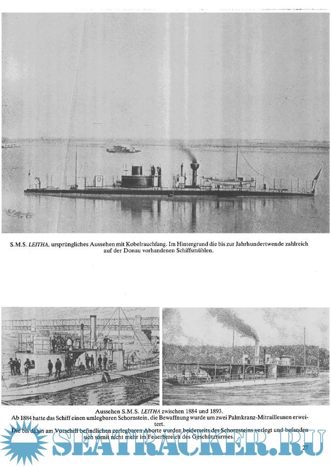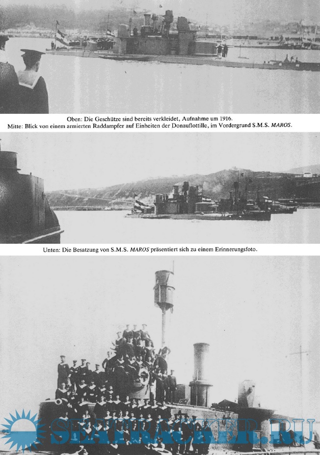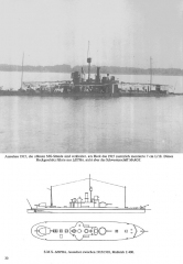 Description: Informative Fotos und Zeichnungen der Schiffe mit informativen Text. Der Schwerpunkt ist die bildliche Darstellungen der Donauschiffe. Einer der Donaumonitore, zumindest der Rumpf, ist in Ungarn sogar noch erhalten.