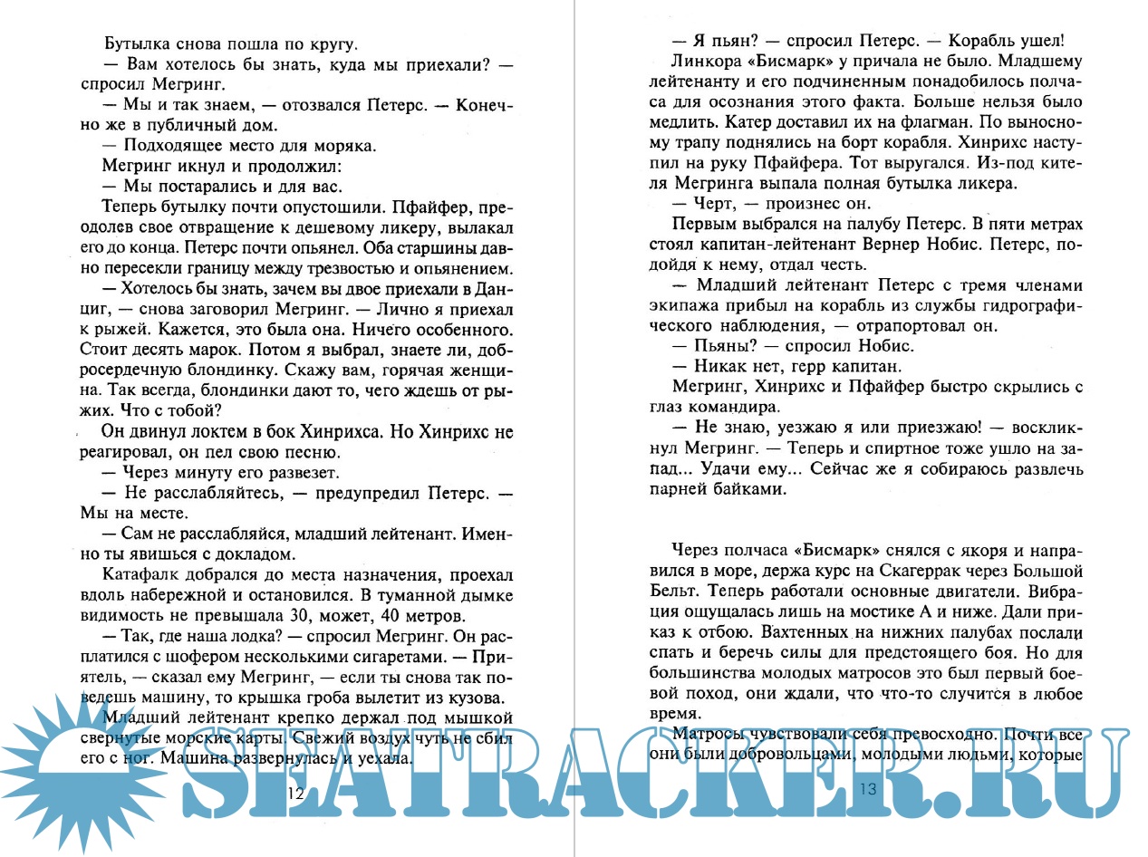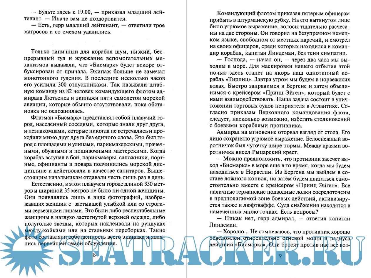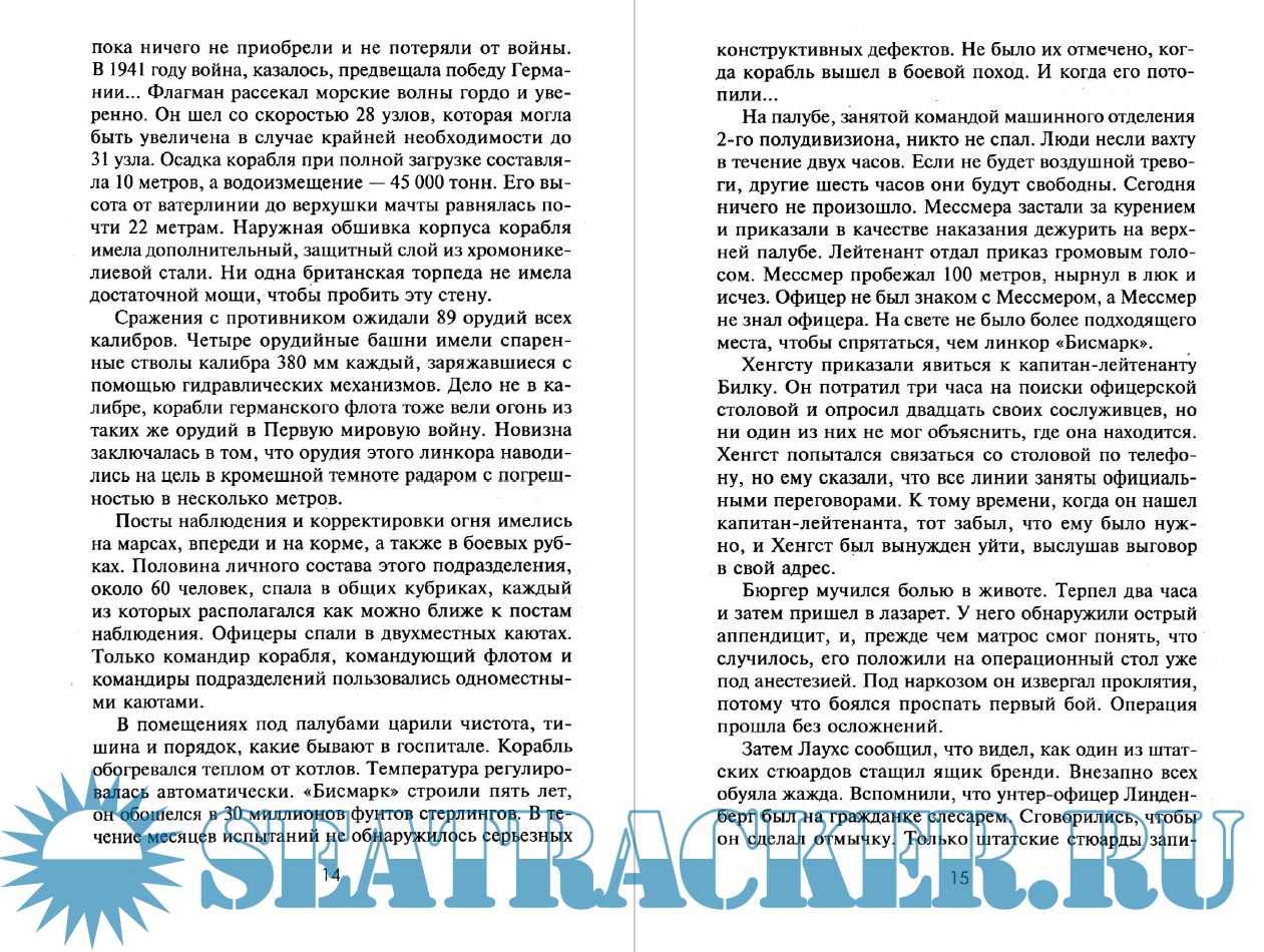 Год выпуска: 2007 Язык: Русский Автор: Бертхольд Вилль Жанр: История Издательство: Центрполиграф Формат: PDF Качество: Изначально компьютерное (eBook) Количество страниц: 251 Описание: Билль Бертхольд рассказывает о сражении германского линкора "Бисмарк" с британскими ВМС. Английское адмиралтейство мобилизовало для перехвата немецкого линкора все силы, и ценой собственных потерь после долгого преследования мощный боевой корабль был уничтожен. Автор дает подробные технические характеристики "Бисмарка" и его вооружения, рассказывает, каким курсом следовал корабль, как противнику удалось его обнаружить, какие решения принимало штабное командование и как распределялись обязанности рядовых членов экипажа. В книге воспроизведена картина грандиозного морского сражения, последний бой одного из лучших немецких линкоров, построенного по самым новым технологиям и считавшегося непобедимым.
