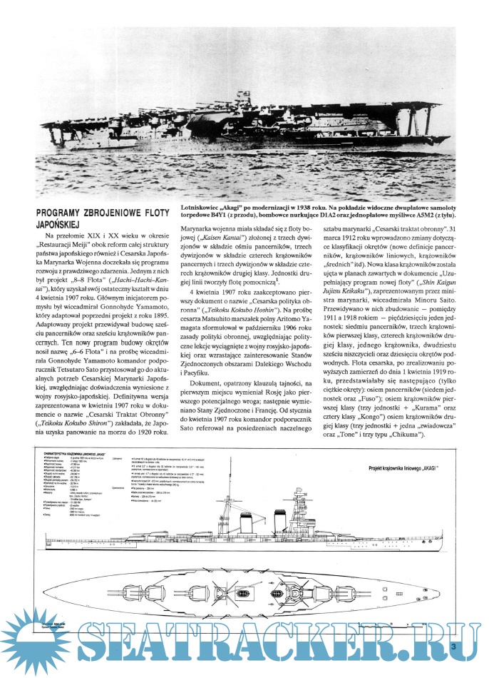 Year: 1994 Language: Polish Author: Miroslaw Skwiot, Adam Jarski Genre: History Publisher: AJ-Press Edition: Monografie Morskie 2 Format: PDF Quality: eBook Pages count: 42 Description: Akagi - japoński lotniskowiec z okresu II wojny światowej. Zatopiony 5 czerwca 1942 w bitwie o Midway. Publikacja zawiera opis techniczny okrętu oraz jego kalendarium do wybuchu wojny. Całość uzupełniają wkładki z planami, schematami i rysunkami.