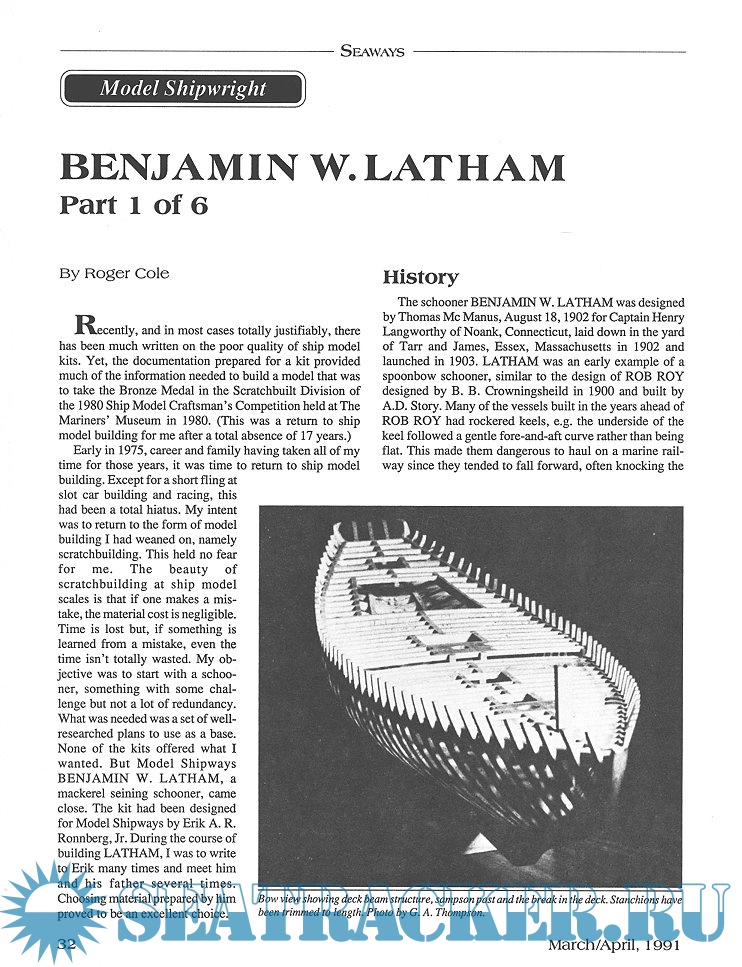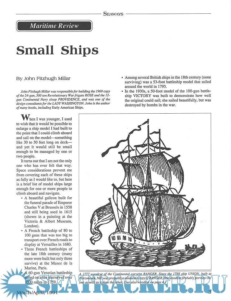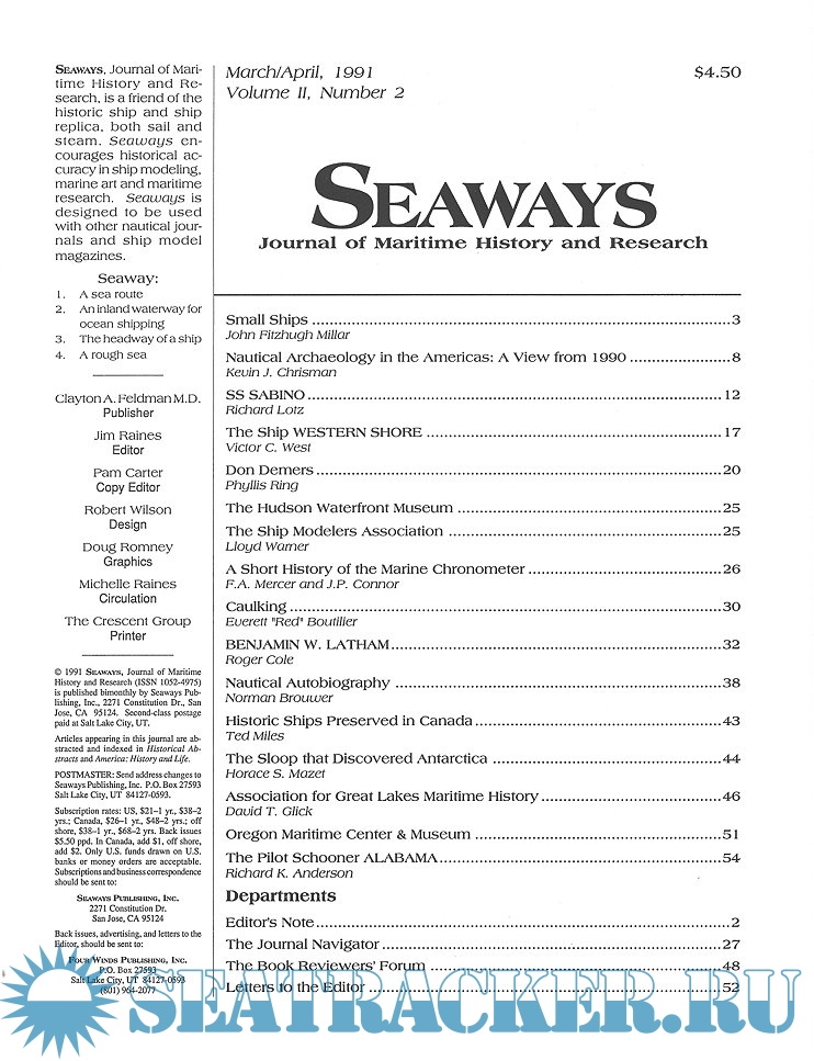 Year: 1991 Language: English Author: Scottie Dayton (Editor) Genre: Periodical (magazine) Edition: 1991-2 Format: PDF Quality: Scanned pages Pages count: 60 Description: Seaway is the home port for Seaways Ships in Scale magazine, the leading workshop and research magazine for the ship modeler. In the magazine we explore all levels of modeling experience, all types of ships, all kinds of models, all historical eras and all construction materials