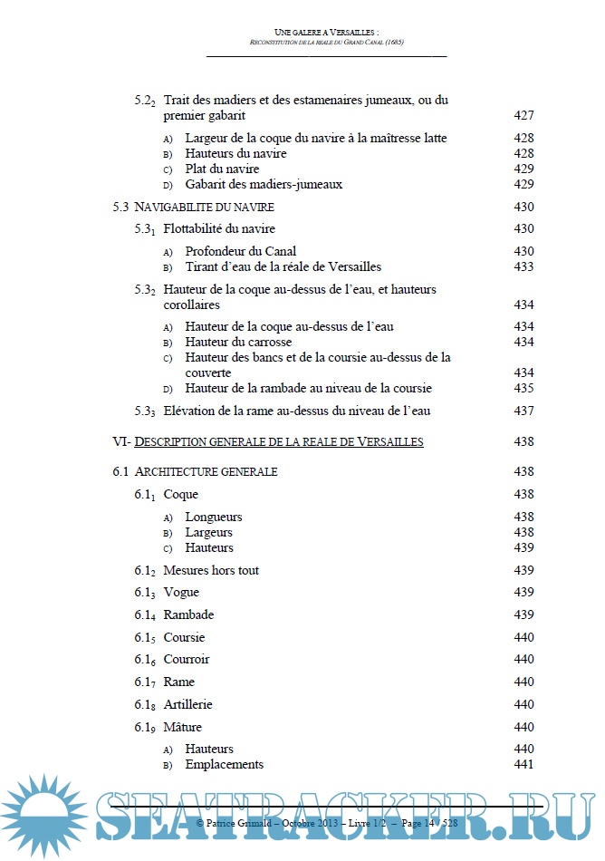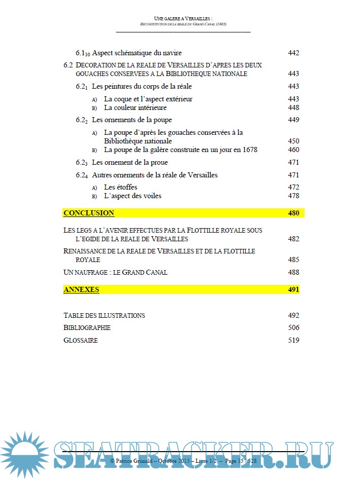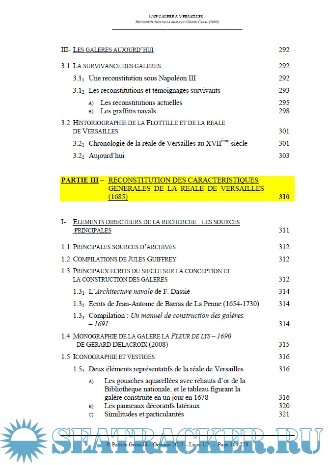 Description: Versailles au Grand Siècle était le foyer d'où rayonnait la gloire du Roi-Soleil. Toutes les institutions du Royaume, tout comme les Arts, les Sciences et les Lettres y jouaient un rôle en décor de fond des trois grandes scènes où se produisait la majesté royale : le château, les jardins et le Grand Canal. La Marine y participait, conformément à la politique de développement élaborée par Colbert. Le Grand Canal fut alors une annexe des arsenaux, un site d'exposition navale, où, à côté de bateaux dédiés aux loisirs nautiques appréciés par la Cour, des innovations, des prototypes et des bâtiments de combat furent présentés au Roi et concoururent à l'image de sa puissance. Au-dessus de cette flottille de Versailles régnait un bâtiment d'exception, superbe héritier de vingt cinq siècles d'histoire maritime des peuples de la Méditerranée : la galère réale du Grand Canal construite en 1685. A l'époque, la galère - parvenue à son apogée conceptuelle et technique - constituait toujours le navire emblématique de la domination navale du Roi. Bien que surclassée dans les batailles par l'artillerie des vaisseaux, elle conservait un prestige exceptionnel qui tenait notamment à sa magnificence et à son influence dans la communication politique et diplomatique de Louis XIV. Servir sur les galères, tant pour les officiers que pour les sous-officiers, les marins ou les soldats, conférait une haute dignité, très recherchée, sous l'égide de la Foi, de la Justice, de la grandeur et de la puissance du Roi. Une galère à Versailles, une réale, bien sûr, était ainsi dans l'ordre des choses. Elle y fut construite en 1685. Sa renaissance se situerait aujourd'hui dans la logique des restaurations menées depuis plus d'un siècle dans le château et son Domaine pour en retrouver l'apparence et l'atmosphère. Il n'en reste que deux panneaux décoratifs latéraux, et quelques rares informations d'archives. Rien qui renseigne directement sur les cotes de ce navire d'exception. Il a donc été nécessaire de reconstituer d'abord les méthodes de conception et de construction des galères. Il fallut ensuite adapter les résultats obtenus, parfois incompatibles entre eux, à la fonction du bâtiment, afin de parvenir à ressusciter son architecture générale dans laquelle convergent en cohérence toutes les sources et analyses historiques sur ce sujet.