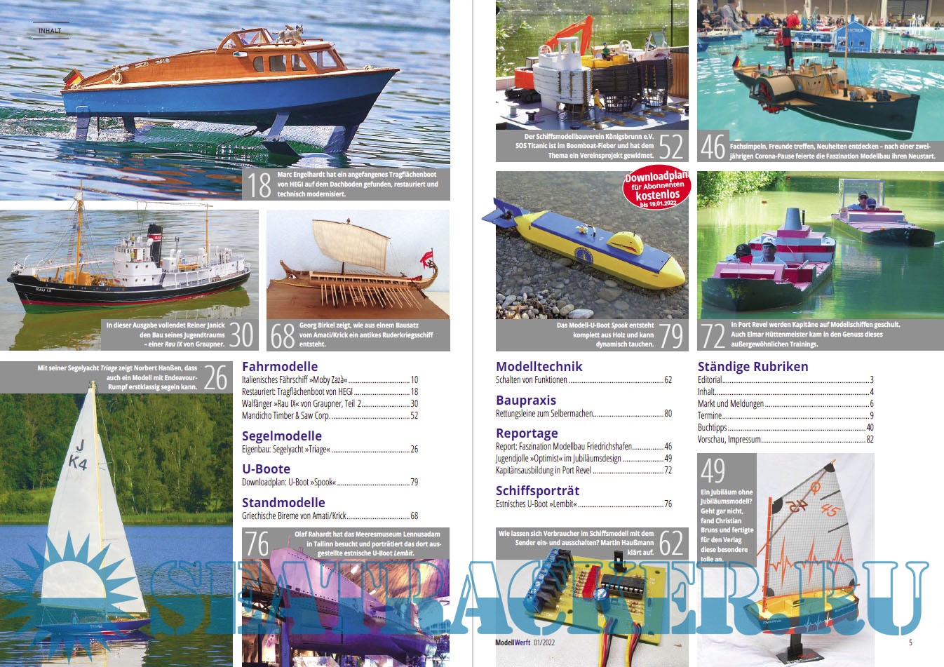 Year: 2022 Language: German Author: Eric Schafenrort (Redaktor) Genre: Periodical (magazine) Edition: 2022-01 Format: PDF Quality: eBook Pages count: 84 Description: Das führende Fachmagazin für Schiffsmodellbauer. Egal ob Stand- oder Fahrmodell, ob kleines Segelboot oder gigantisches Kreuzfahrtschiff. Die Modellwerft informiert über Neuheiten, hilft mit Bautipps und fasziniert mit besonderen Reportagen.