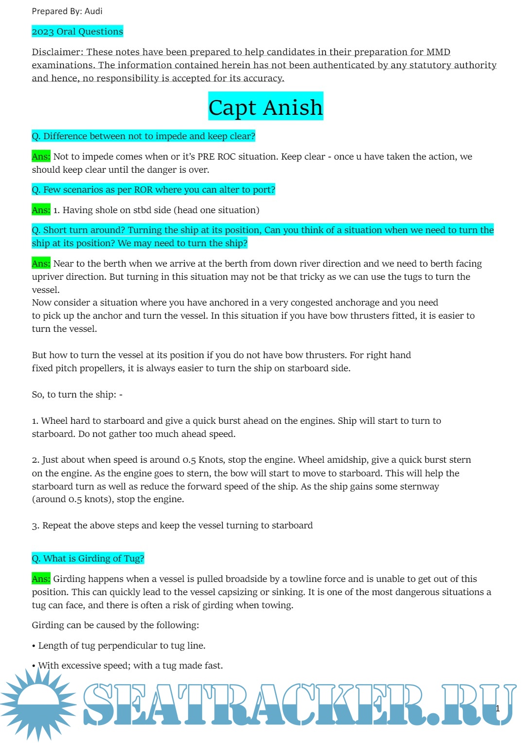 Advanced Shipboard Management - Master (FG) Orals Question and Answer Sets - Mukesh Jivraj Solanki…