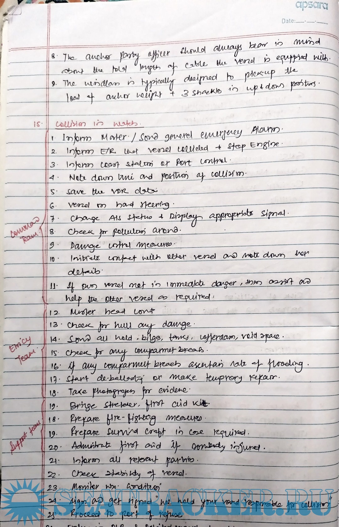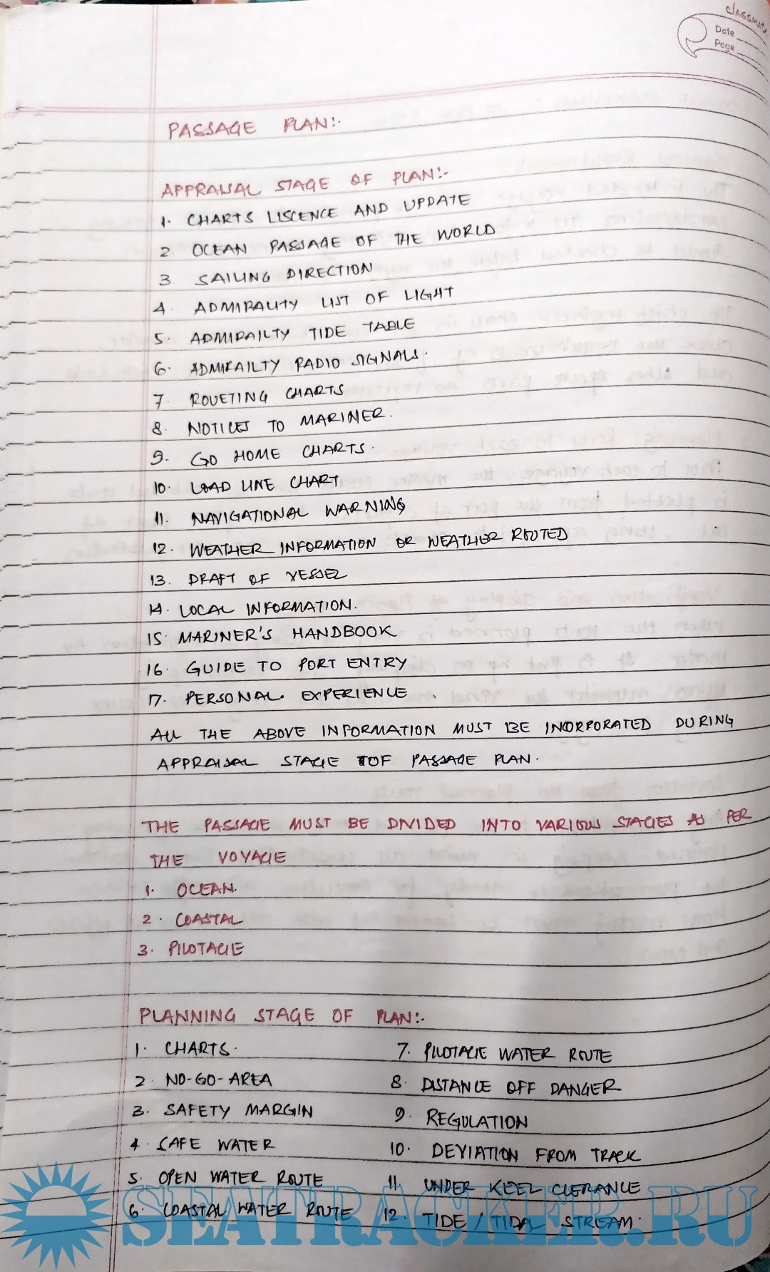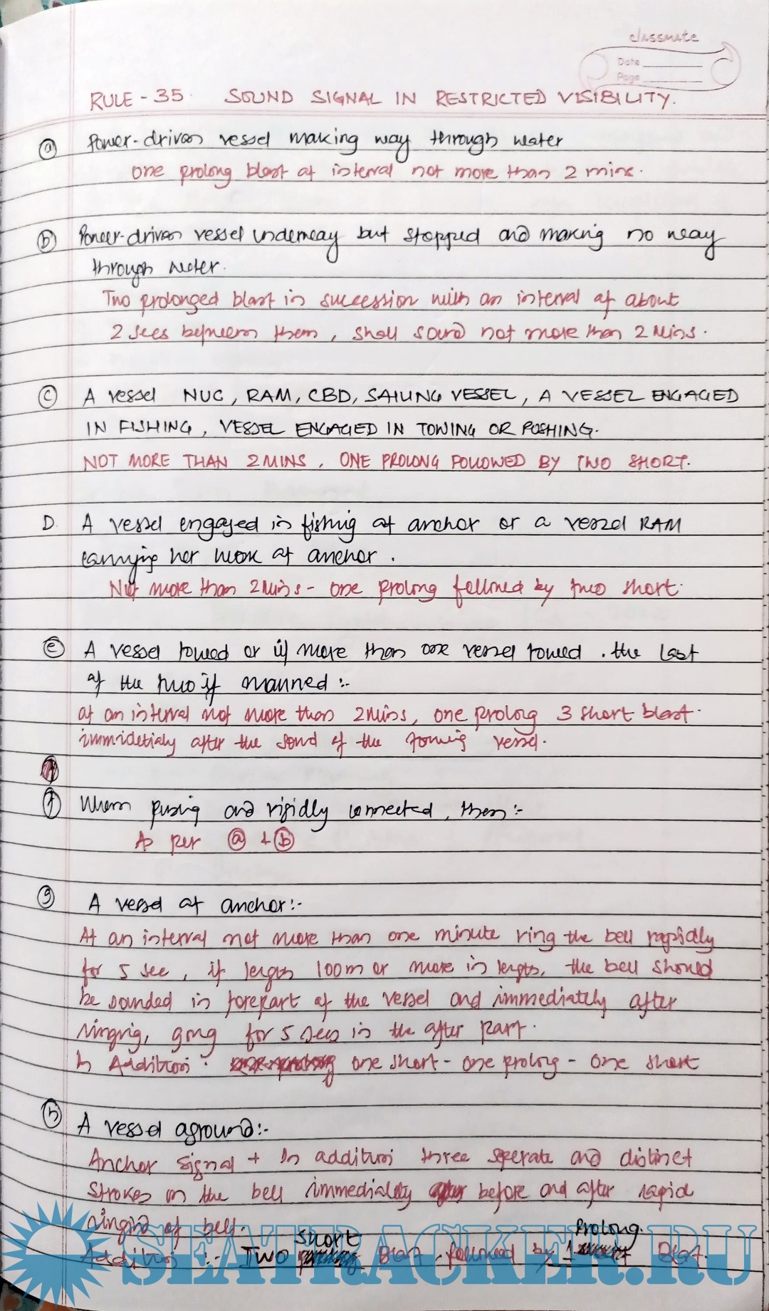 Description: These are hand written notes for candidates appearing for First Mate Orals conducted by DG Shipping, India.