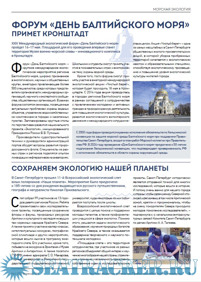 Описание: Целью информационного печатного издания является информационное освещение всех направлений морской деятельности Санкт-Петербурга: морской и речной транспортной деятельности, военно-морской деятельности, деятельности по эксплуатации портовой инфраструктуры, судостроения, деятельности по обеспечению экологической безопасности морского и речного судоходства, морского образования и науки, морского и речного туризма, парусного спорта и маломерного флота, деятельности по изучению, освоению и использованию Мирового океана и многое другое.