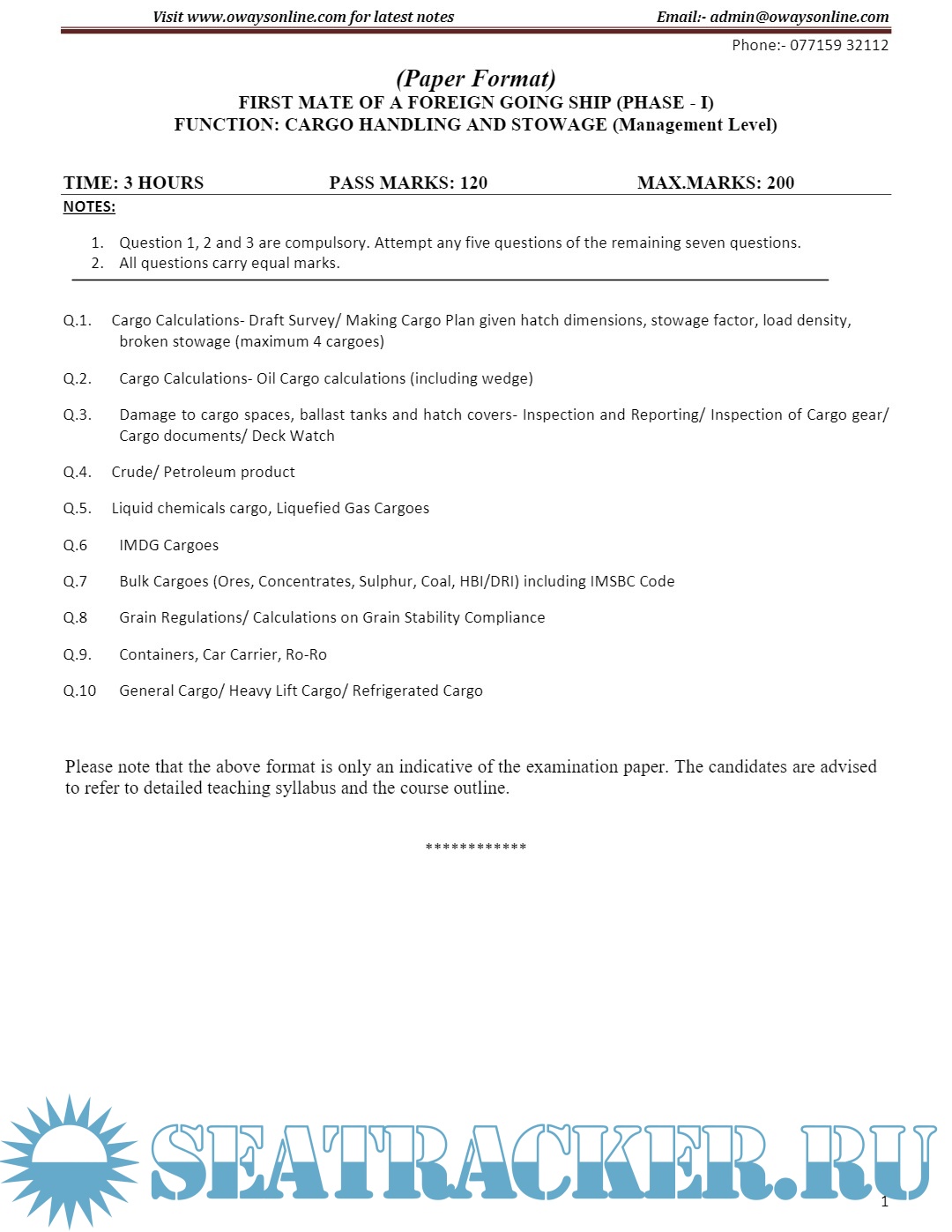 Description: Question Paper Set for Phase I (Chief Mate F.G.) Mercantile Marine Department (MMD), India Examination
