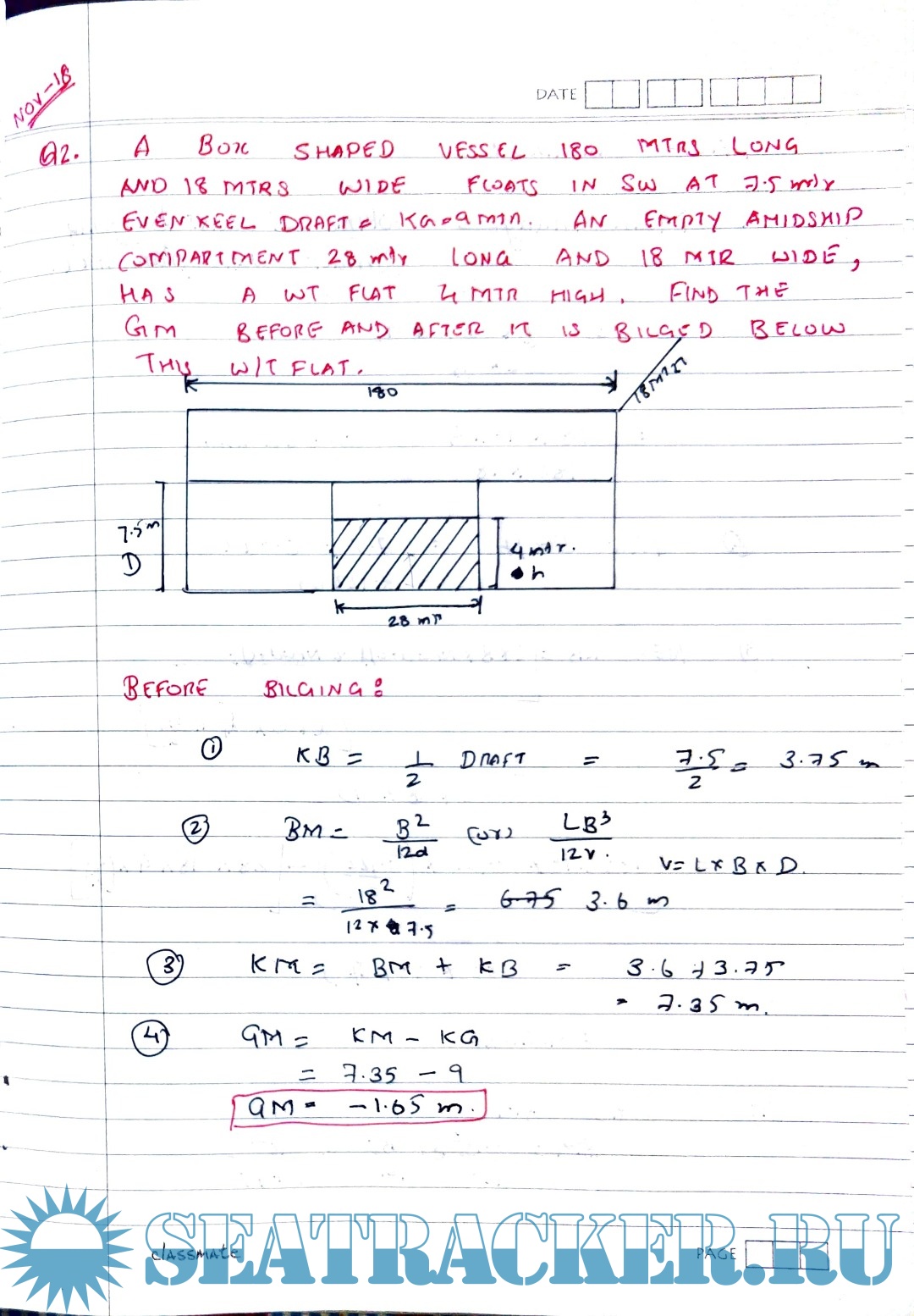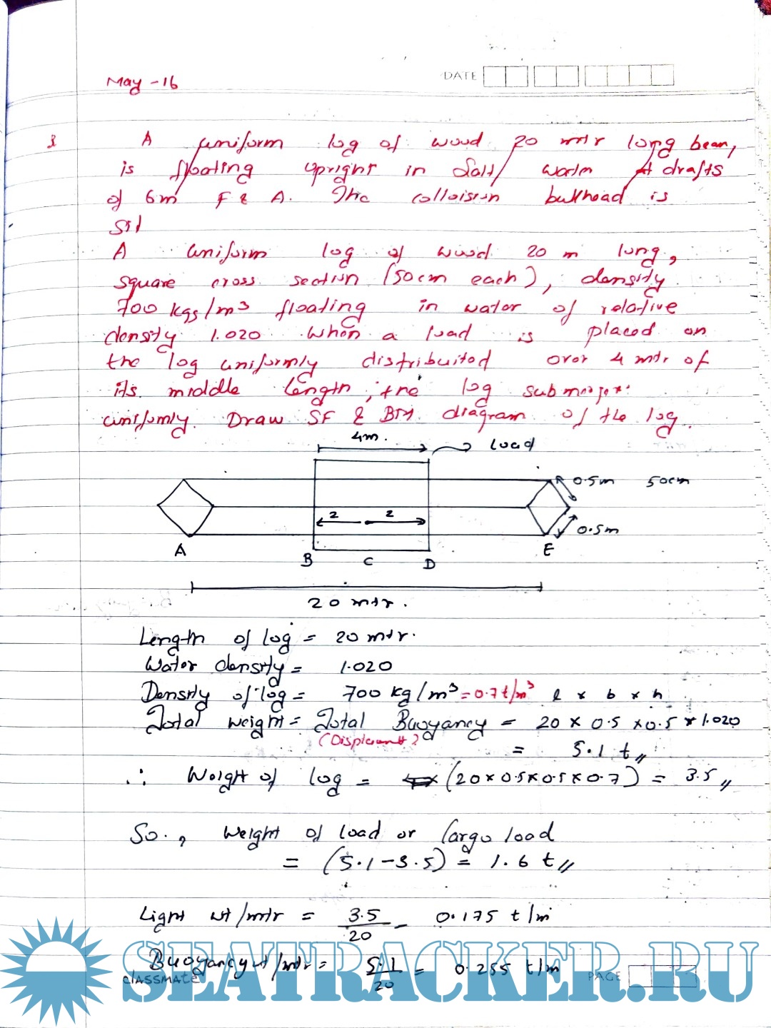 Naval Architecture II - Solved Numericals (20xx-2019) from Past Question Papers of Mercantile Marine Department (MMD), India Examinations for Phase II (Chief Mate F.G.)