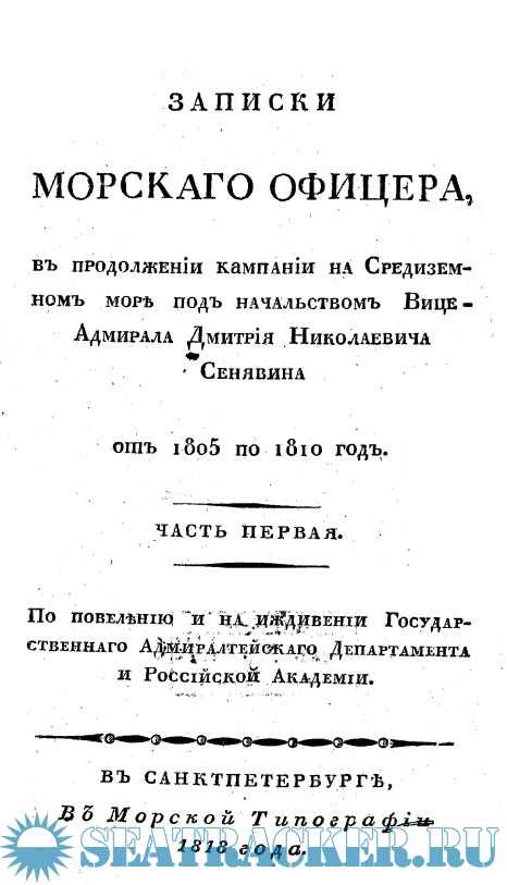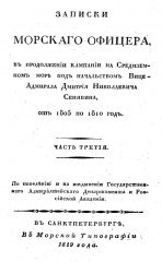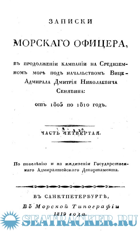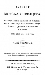 Записки морскаго офицера в продолжении кампании на Средиземном море под начальством вице-адмирала Дмитрия Николаевича Сенявина от 1805 по 1810 год.(4 части)