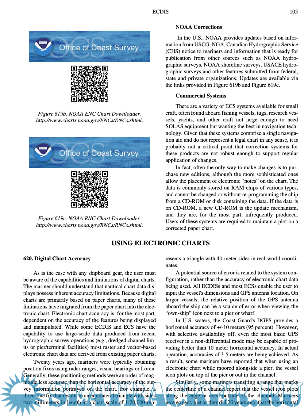 PART 1, FUNDAMENTALS, includes an overview of the topic of marine navigation and the organizations which develop, support and regulate it. These fundamentals include chapters relating to geodesy and chart datums; modern hydrography; the types, structure, use and limita- tions of nautical charts; electronic chart display and infor- mation systems; and finally a concise explanation and sum- mary of the various navigational publications necessary for prudent marine navigation.