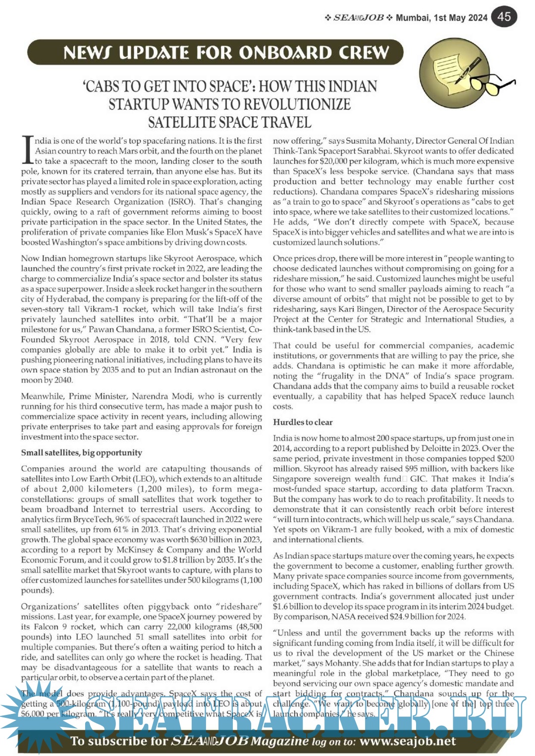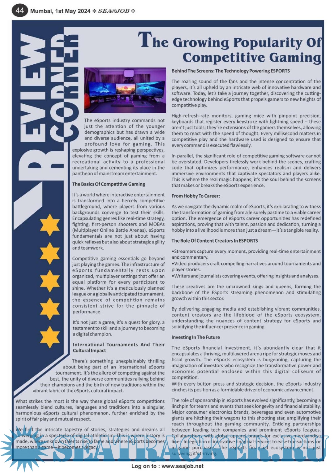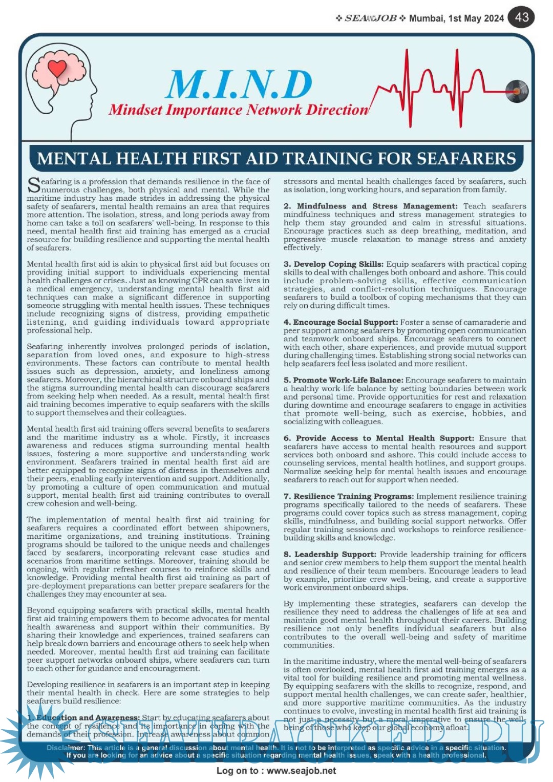 Description: The Sea and Job magazine launched in May 2007, was the second venture of Sea Line Group succeeding 'seajob.net' bringing the much renowned essence to the Group, the Sea and Job Magazine quickly gained popularity, becoming the No. 1 Shipping Magazine that came to be widely circulated all over India. Sea and Job over the years has evolved as the most trusted, ethical, objective and read maritime publication that possesses a large database of subscribers from various verticals in the industry.The magazine provides informative and interesting articles covering not just the shipping world but also the world outside it.Sea and Job is also a medium for the shipping/ manning companies to advertise marine jobs and also to promote their organization by publicizing internal activities like seminars, sports events and parties.Some notable endeavors of the magazine include the Know Your Recruiter Column, the Sailing Episodes Column and the Marine Insights section. The consistent efforts and the dedication to provide extraordinary services to the industry has resulted in the magnifying popularity and patronage of Sea and Job.