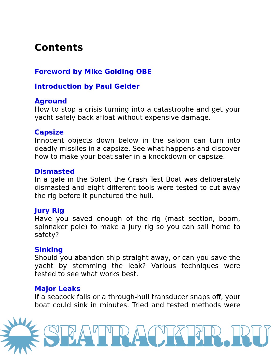 Description: From the people behind the UK's leading sailing magazine for cruisers comes Crash Test Boat, a dramatic documentation of controlled sailing disasters which has the potential to save the lives of each and every seaman who buys it.Crash Test Boat is unique in its field, with no other title on the market aimed at explicitly revealing at first hand what happens when a boat encounters a major disaster. On the spot reporting with action photographs show what happens when typical family boats fall victim to eight different types of sailing disaster. How quickly does a cabin fill with water when the hull is holed? How do you control a gas leak or explosion? What should you do first when dealing with a dismasting?By providing cruising and racing yachtsmen with vivid accounts of such extreme events, Crash Test Boat equips the reader with vital knowledge on what to do if disaster strikes and, ultimately, gives everyone on board a greater chance of survival if the boat is overcome.