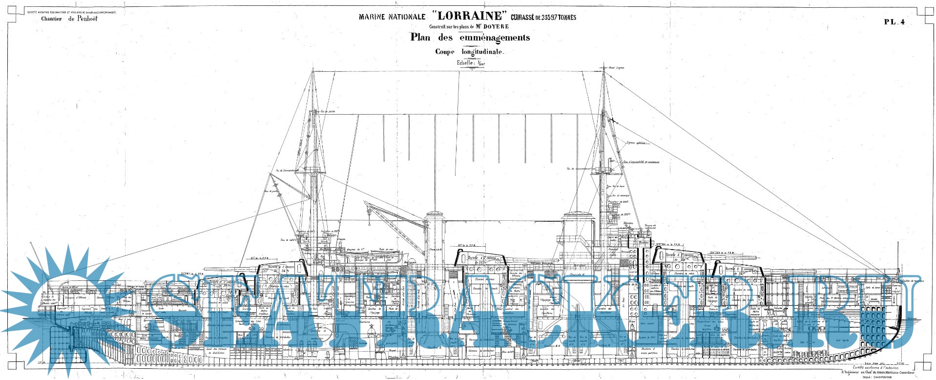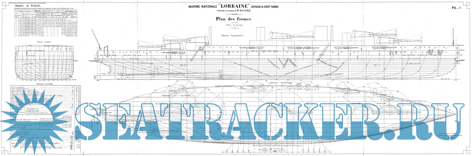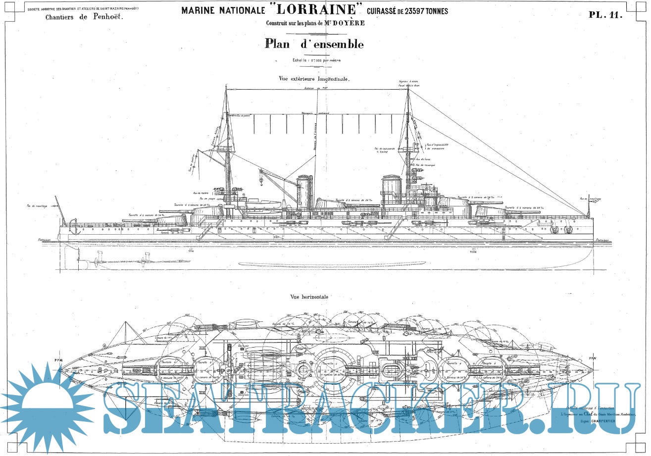 Архивные чертежи линейного корабля LORRAINE (Франция) 1913 год