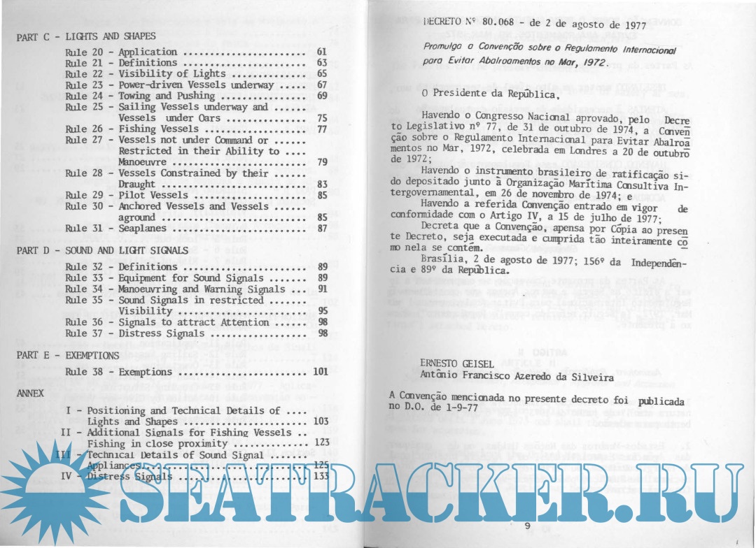 Description: CONVENÇÃO SOBRE O REGULAMENTO INTERNACIONAL PARA EVITAR ABALROAMENTOS NO MAR, 1972