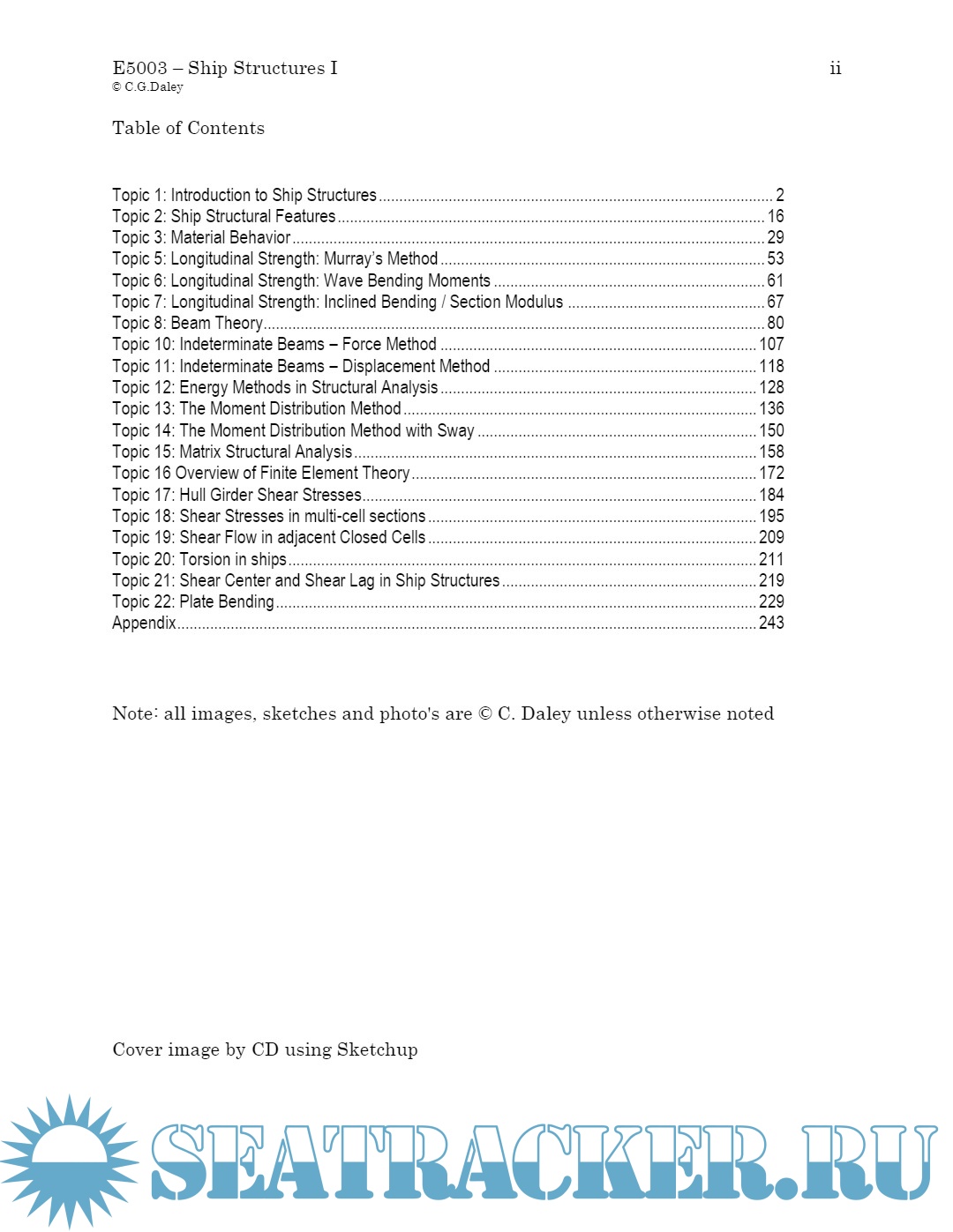 Year: 2020 Language: English Author: Claude Daley, Professor, D.Sc., P.Eng. Genre: Technical book Publisher: Memorial University Format: PDF Quality: eBook Pages count: 247 Description: The course is intended to develop the student’s knowledge of ship structures. The focus is on various types of intact structural behavior, building upon concepts from mechanics of materials. The course project will involve the design, assessment, drawing and reporting on the mid-ship scantlings (hull girder design) of a large vessel. The follow-on course (6003) will move from the consideration of intact behavior to the mechanics of structural failure. One of the aims of the course is for the students to develop the ability to make an educated guess. Such guesses are not wild or random. Educated guesses are based on sound reasoning, careful approximation and simplification of the problem. In most cases the 'guess' starts by forming an idea of the problem in its essential form, or in 'bounding' forms. Basic laws of mechanics are considered to determine what fundamental principle might govern the outcome. Most problems are governed by simple conservation laws, such as of forces, moments, momentum and/or energy. A related aim of the project is for the students to develop the ability to sketch the problem at hand, by hand and clearly. Sketching is a form of symbolic communication, no less valuable than the alphabet or algebra.