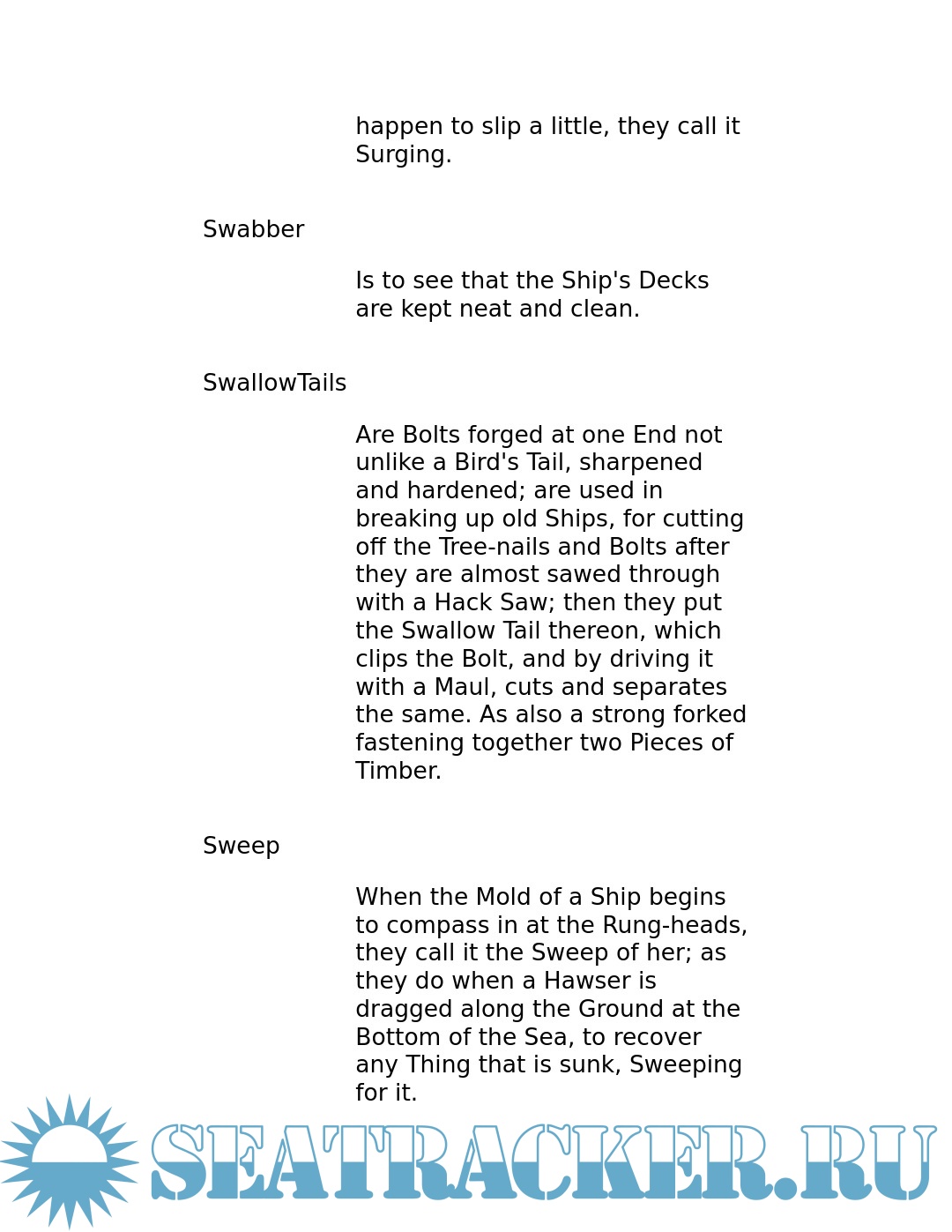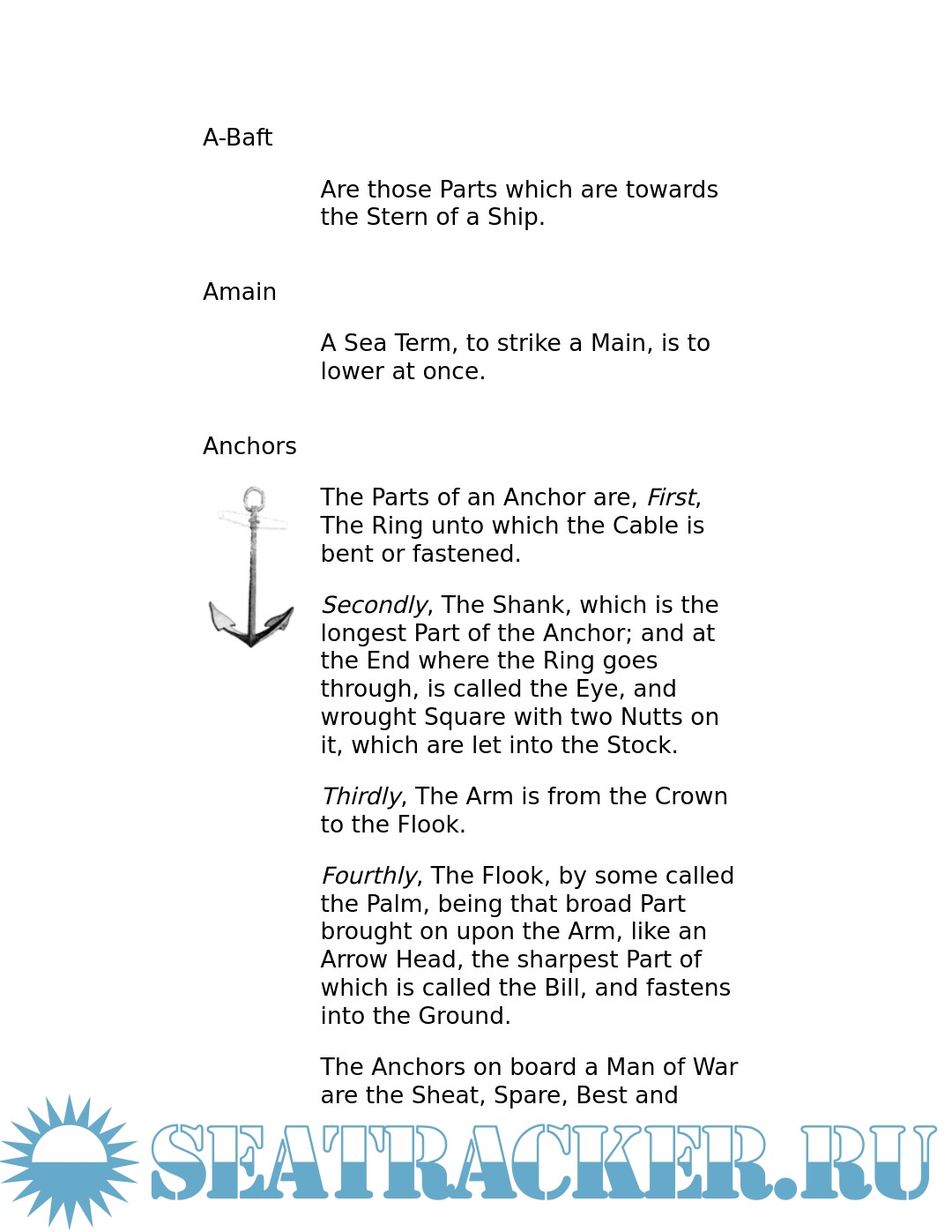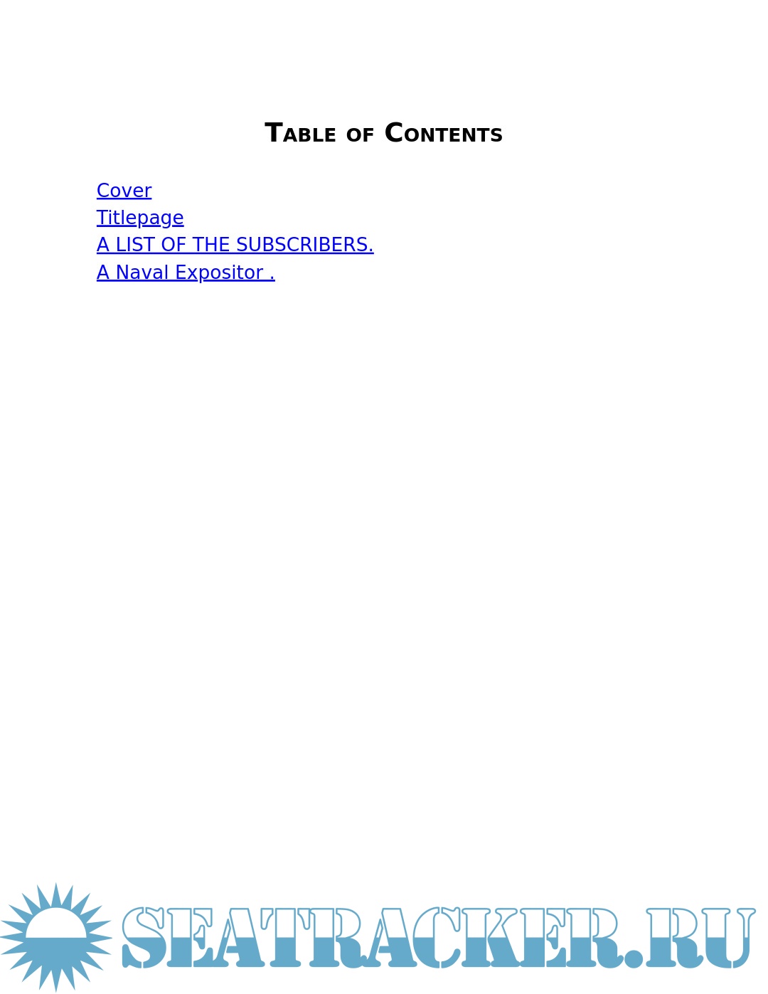 Year: 2022 Language: English Author: Blanckley T.R. Genre: Dictionary Publisher: DigiCat Format: PDF/EPUB Quality: eBook Pages count: 262 Description: A Naval Expositor; Shewing and Explaining the Words and Terms of Art Belonging to the Parts, Qualities and Proportions of Building, Rigging, Furnishing, & Fitting a Ship for Sea, has been considered an important book throughout the human history. So that this work is never forgotten we have made efforts in its preservation by republishing this book in a modern format for present and future generations. The whole book has been reformatted, retyped and designed. This book is not made of scanned copies and hence the text is clear and readable.