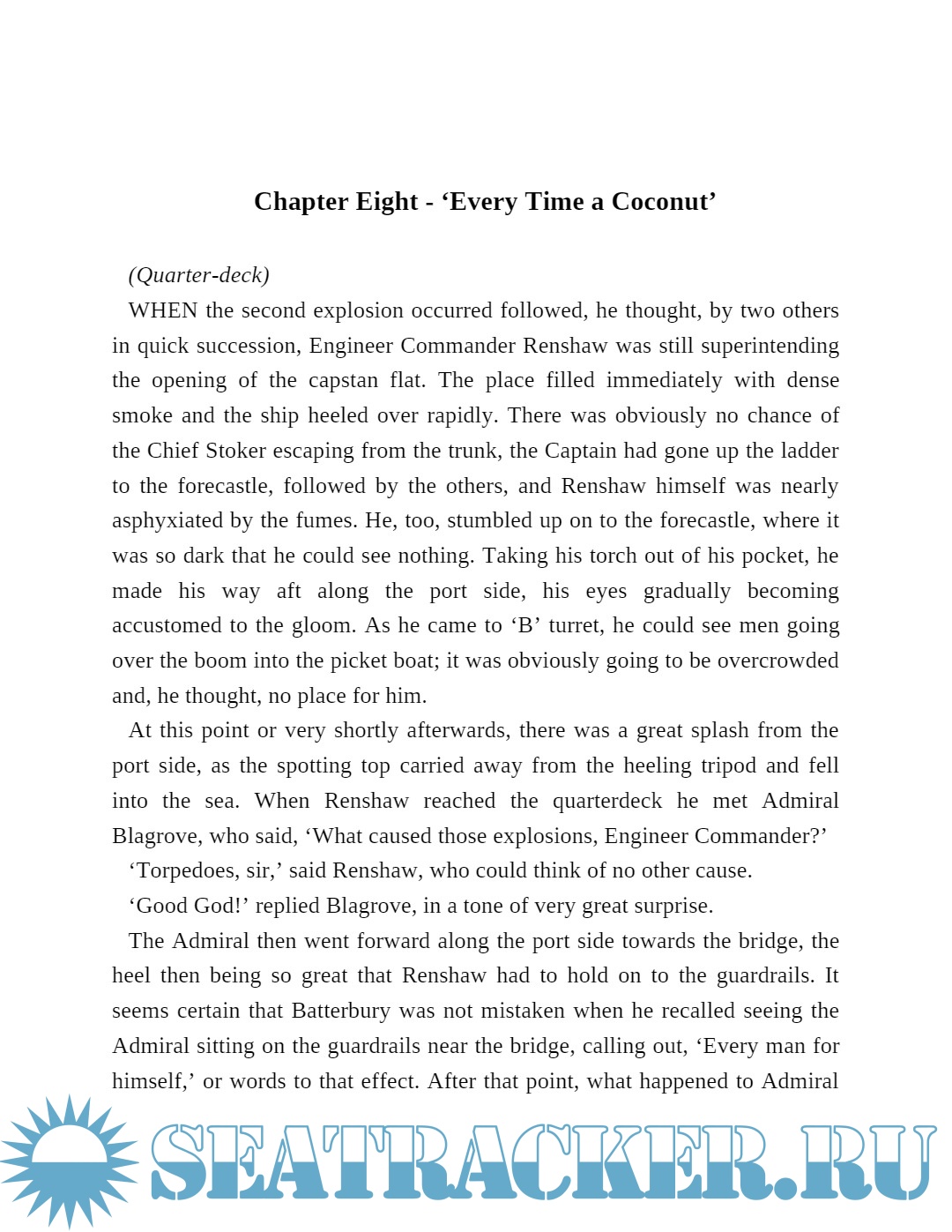 At this stage, the ship was taking on water and the crew were desperately trying to find ways to escape the sinking ship. In darkness and with the ship listing, the crew struggled to make their way to the upper deck.