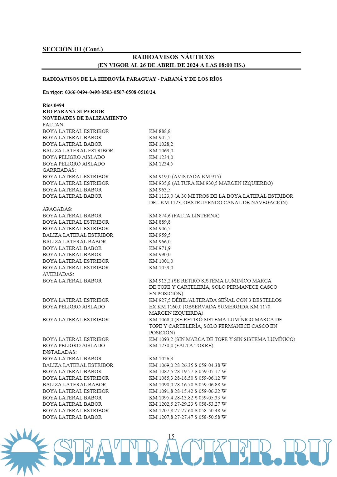 Boletín Avisos a Los Navegantes - Hidrovía Paraguay-Paraná