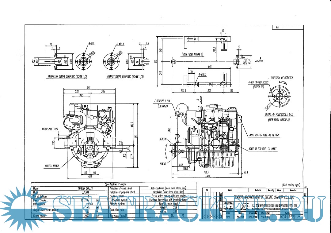 Year: 2012 Language: English Author: Collective Genre: Documentation Format: PDF Quality: eBook Pages count: 130 Description:This boat are designed, condtructed and equipped in accordance with "1983, 1996, 2000 and 2006 amendents to the international convention for safaty of life at sea, 1974", Lsa code "new Msc resolution 218(82), 226(82) and 272(85) to amend Msc.81(70)", "guidance for the approval and type approval of materials and equipment for marine use 1998" and also Med. Boat type: Normal type free-fall life boat, model Jym-fn-6.65. Specification. General arrangement of free-fall life boat Jym-fn-6.65 (Normal type). Equipment list for free-fall life boat. General arrangement of engine. Spare parts for diesel engine. Detail of realise hook. Arrangement of steering system. Arrangement of battery charging system. Spare parts for electric parts. Recommended lubrication oil, fuel and cooling water. Freefall lifeboat operation & Maintenance manual. Yanmar diesel engine operation manual. Electric diagram. Maintenance.